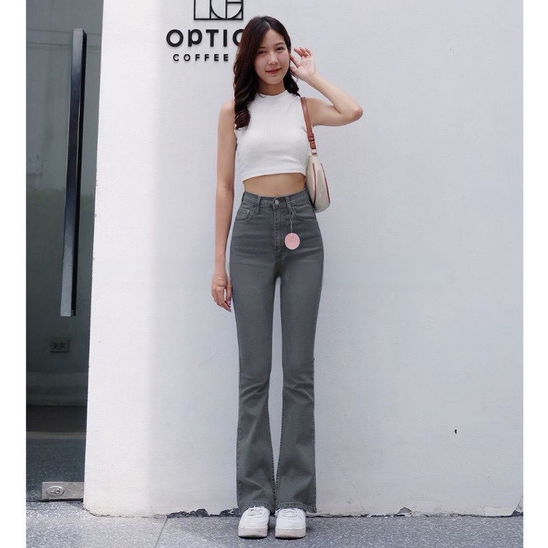 Cutbray -Jeans Cutbray Highwaist Wanita Celana Cutbray Stretch Import Celana Jeans Highwaist abu-abu