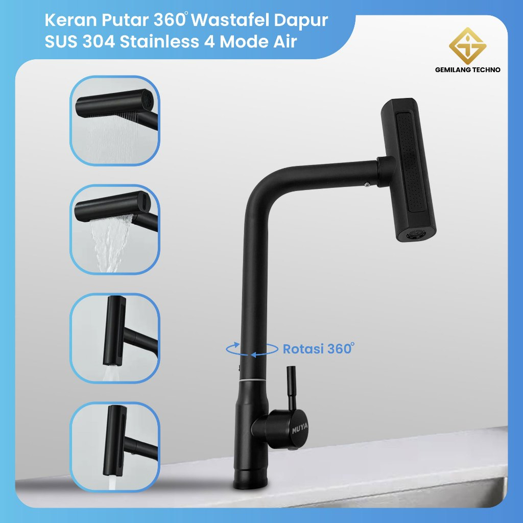Kran air wastafel cuci piring keran Sink dapur angsa Fleksible 4 in 1 anti korosi SUS304