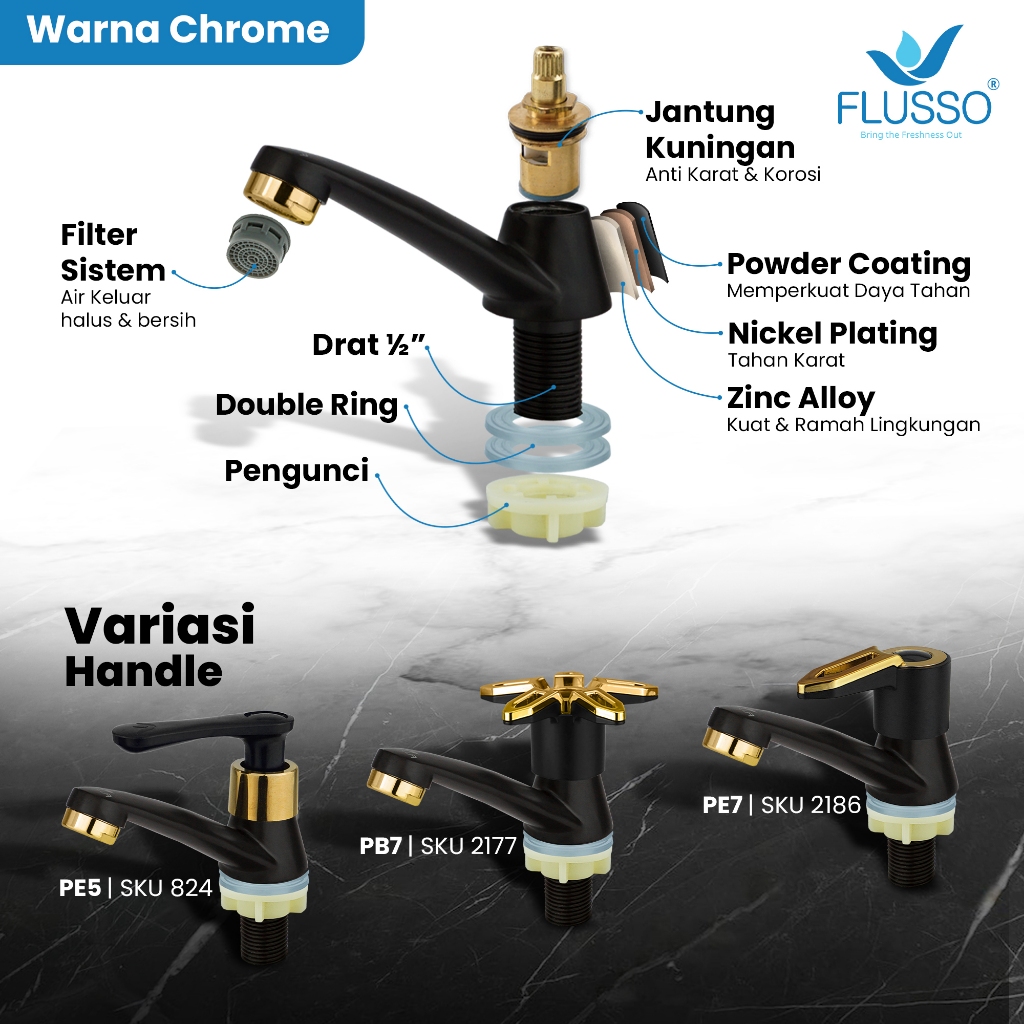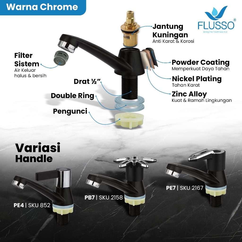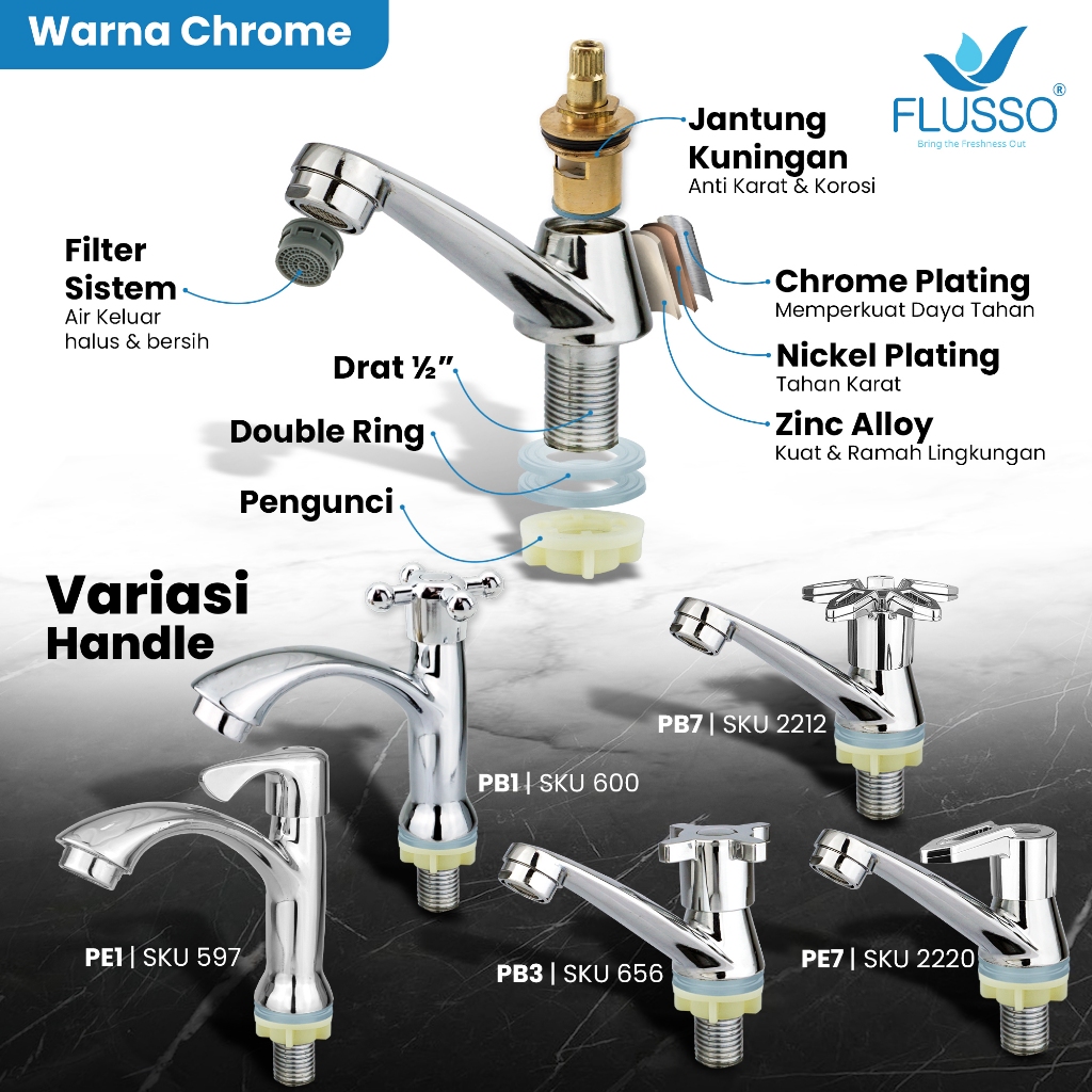 Flusso Kran Air Wastafel Cuci Tangan Drat 1/2 Basin Faucet 597