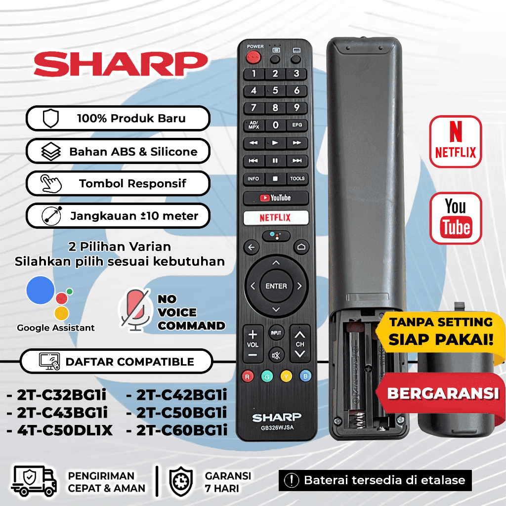 REMOTE TV SHARP SMART LED ANDROID GB326WJSA ORIGINAL VOICE Assistant DAN TANPA VOICE
