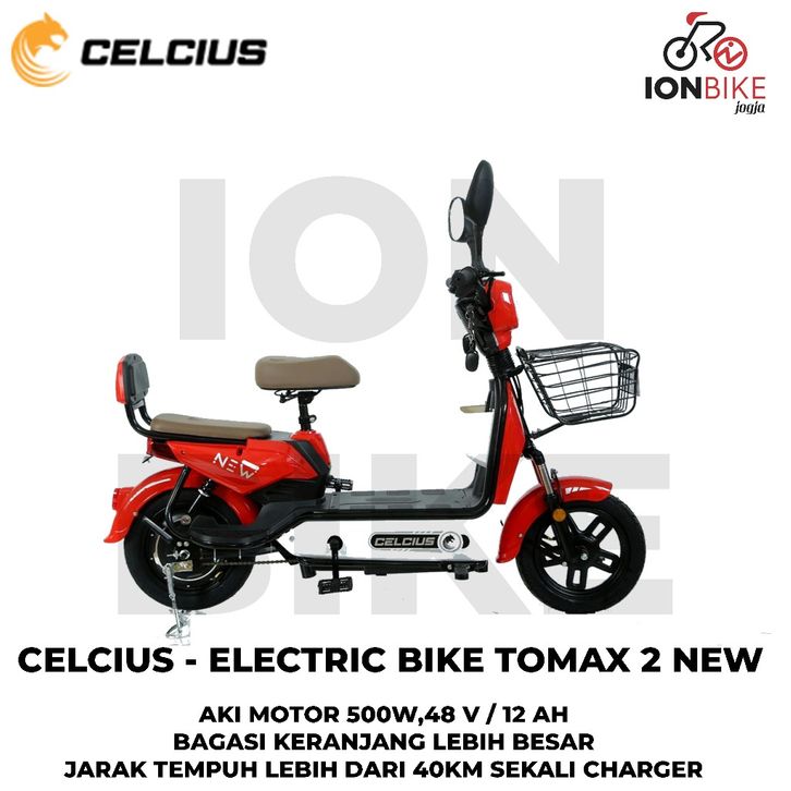 Sepeda Listrik Celcius Tomax 2.0 Speedometer Digital New 450W 48V 12Ah Battery Box Terbaru Eco Excellent Stylish