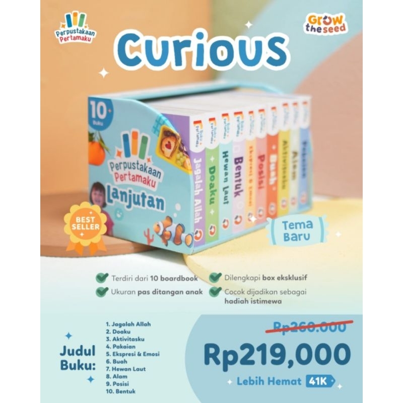 Joy (Awal), Curious (Lanjutan), First Islamic Words, My First Word, Islamic Basic, Animal Word, 100 Kata Pertamaku, 100 Kendaraan, Kisah 25 Nabi Hc, Boardbook ksh25Nabi, Eksperimen seru, Tarbiyah Jinsiyah, Islamic Bedtime