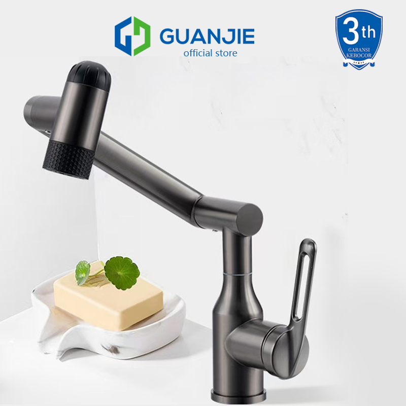 GUANJIE - 360°Derajat Keran Putar Keran Air Panas & Dingin Keran 2-4 Jenis Mode Air Putar Cerat Panas & Dingin Keran W