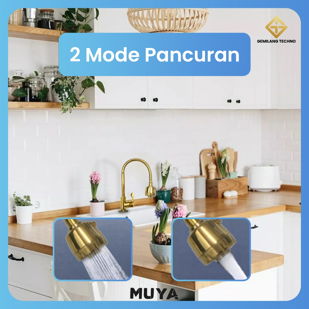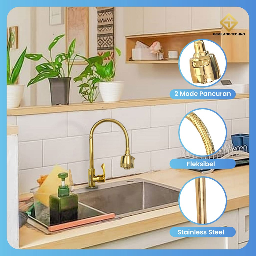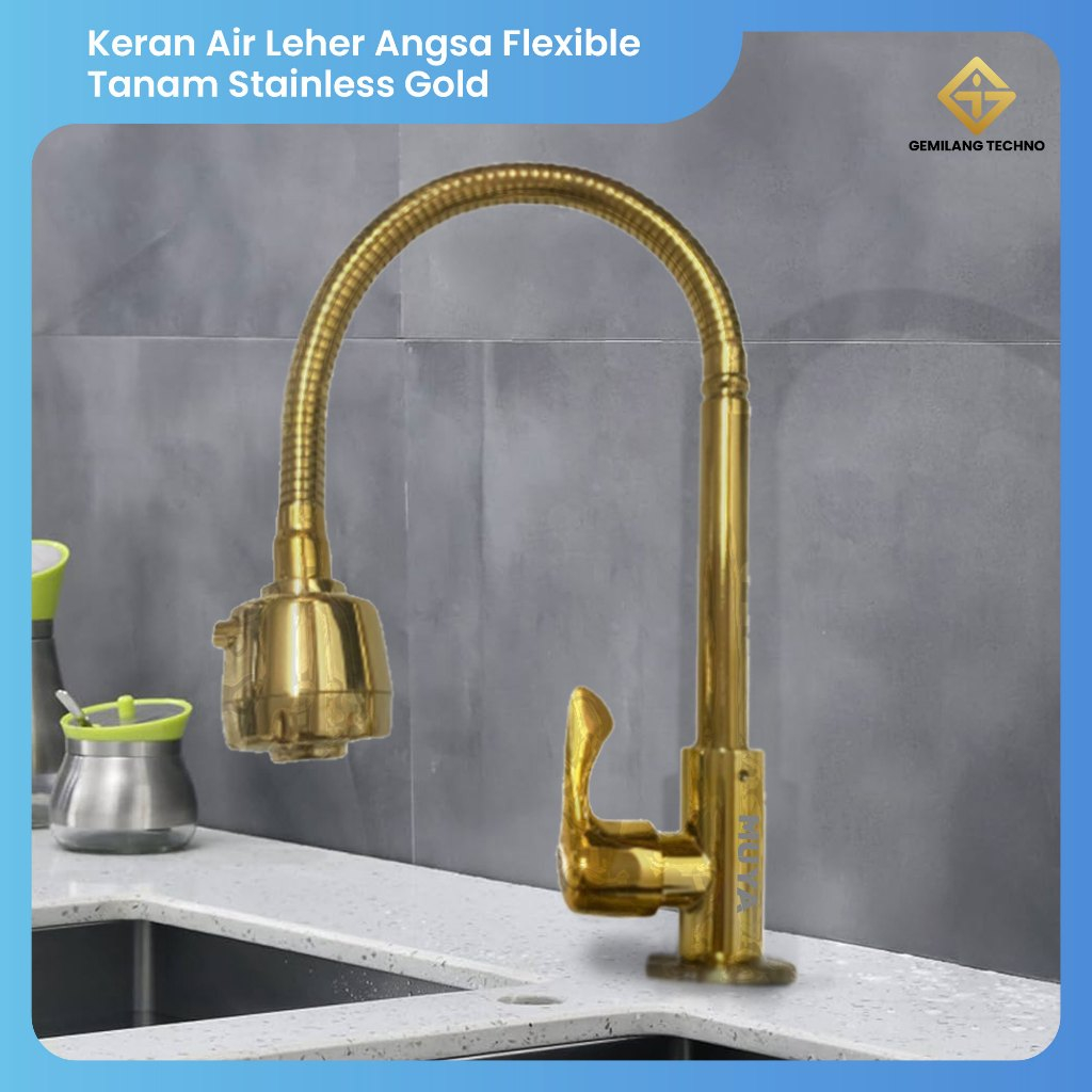 Kran Wastafel Cuci Piring Stainless SUS 304 Flexible Leher Angsa Tanam, Tembok Gold