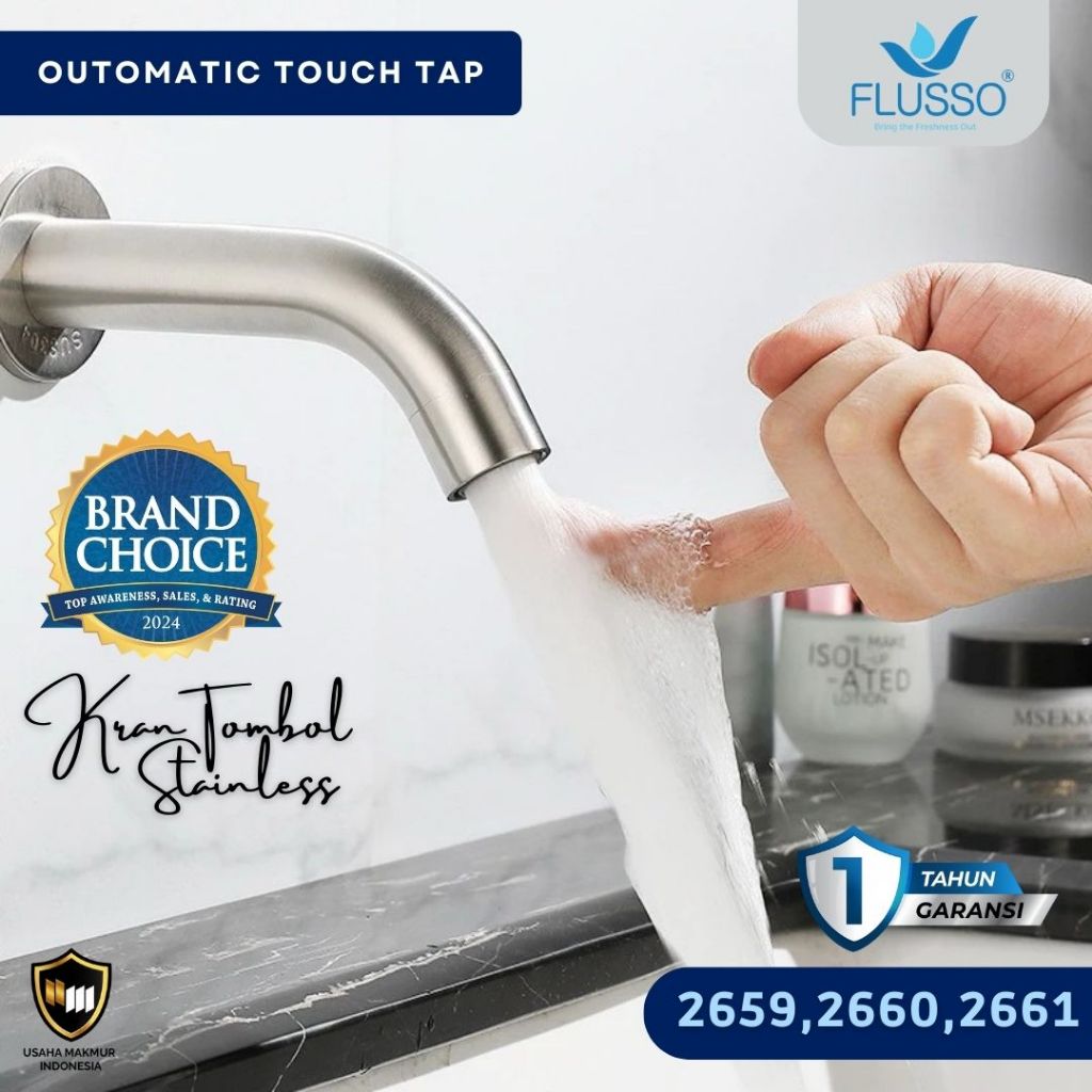 Flusso Kran TEMBOK Stainless tekan ON OFF keran air wudhu unik uniq touch tap faucet push 3 warna