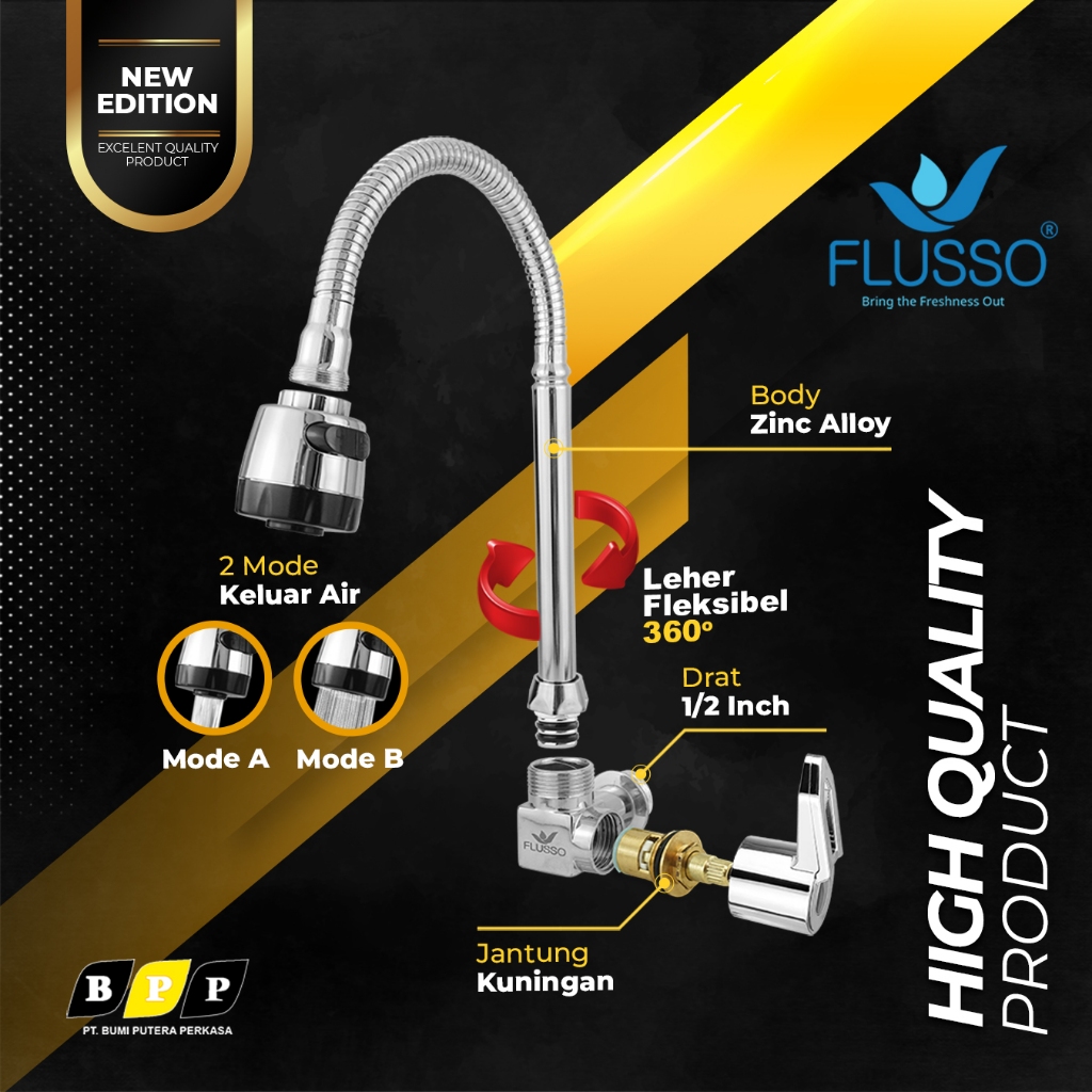 FLUSSO Kran Angsa Fleksibel Wastafel Sink Cuci Piring 2 Mode | Keran Cuci Piring | KAFX8 | 2216