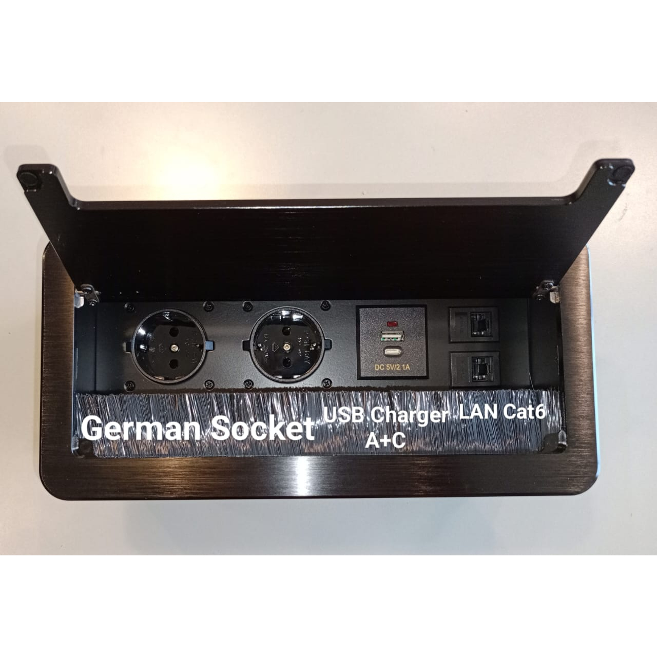 STEKER STOP KONTAK MEJA KERJA KANTOR FLIPBOX SPACELINE LAN USB CHARGER A+C STOP KONTAK MODERN