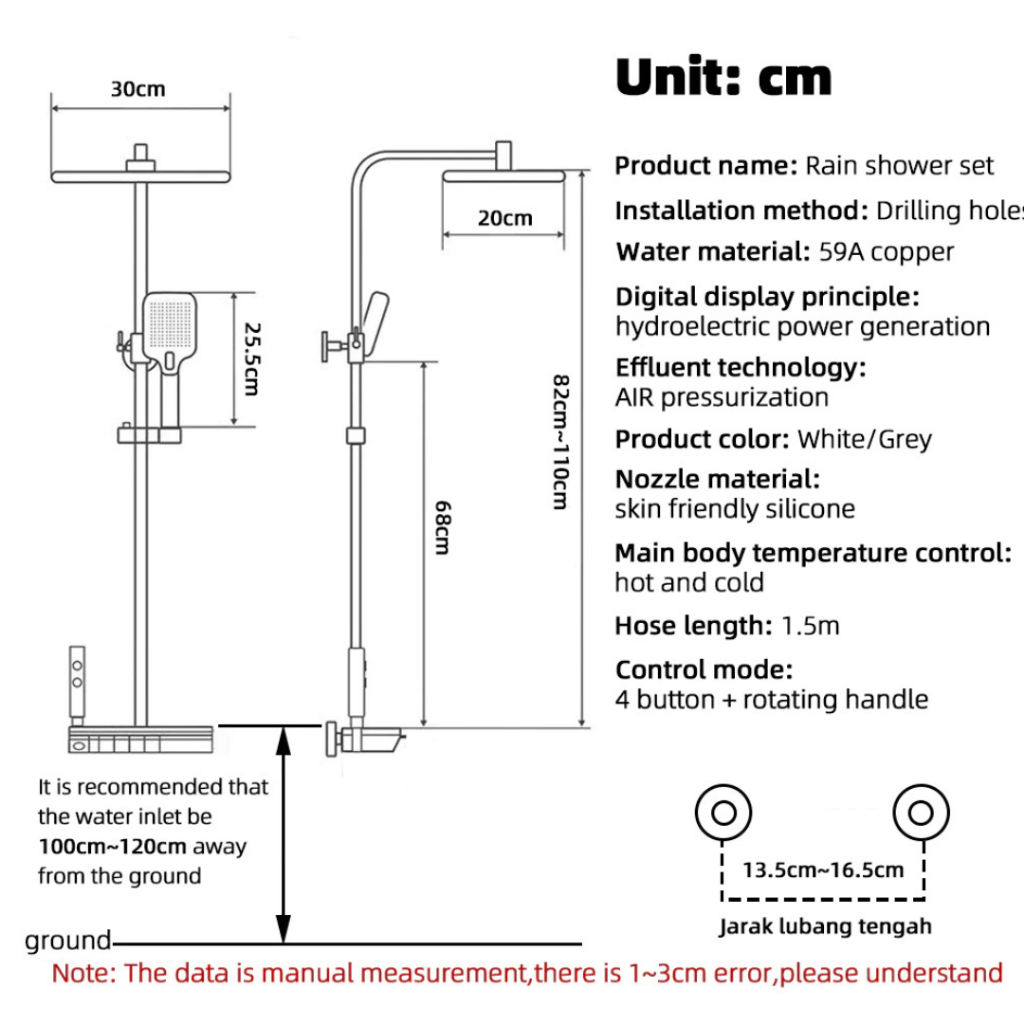 Luxury Shower Led/Shower Digital/Shower Led Panas Dingin/Shower Kamar Mandi Satu Set/Shower Panas Dingin Set Lengkap/Sho