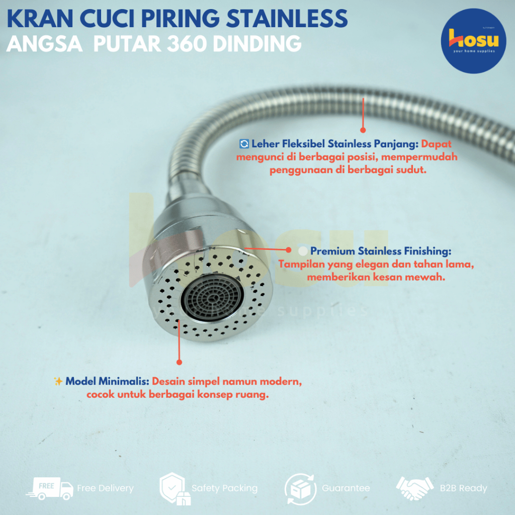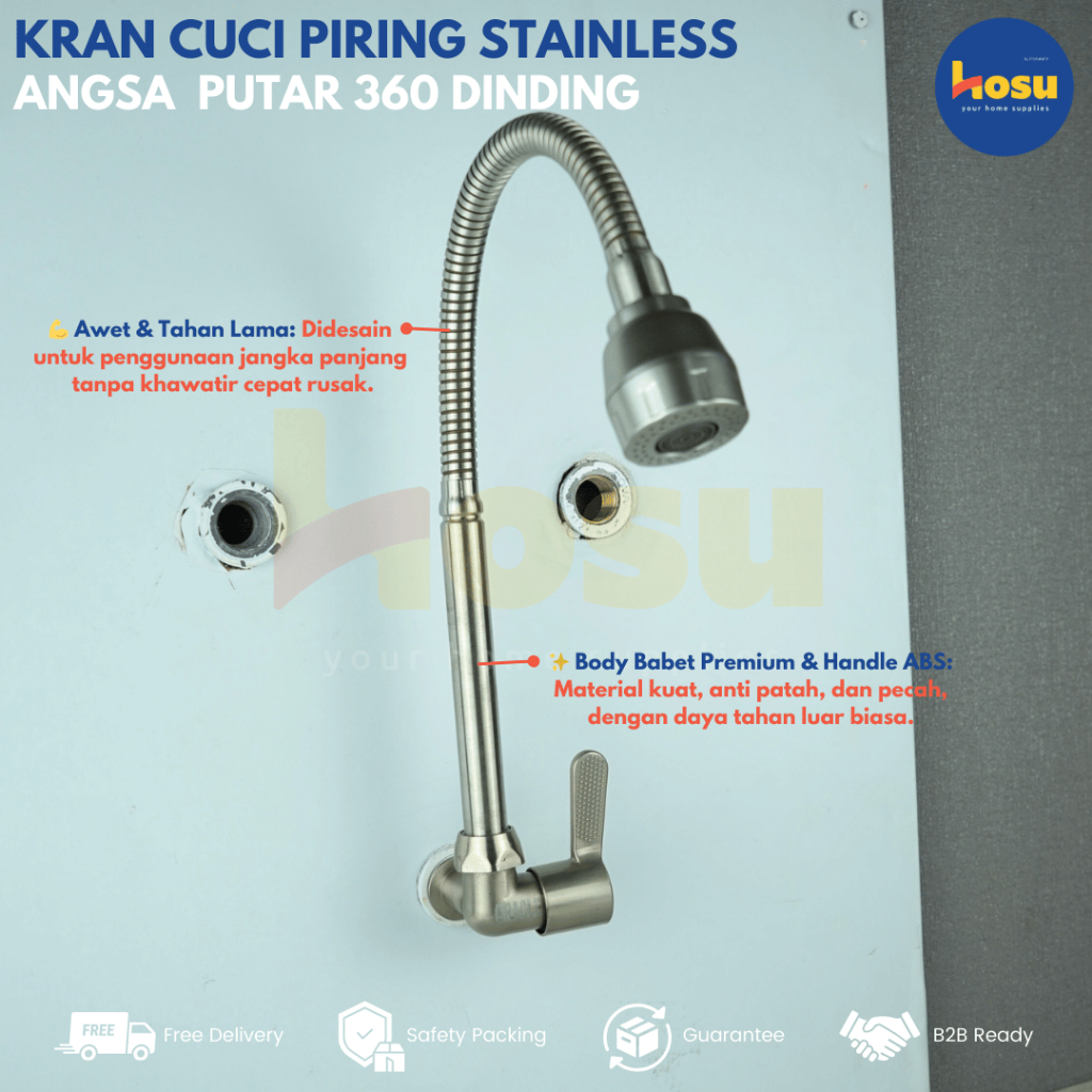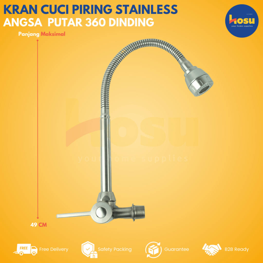 ORACLE Kran Cuci Piring Flexible Stainless Steel Angsa Putar 360° Dinding Filter Air / Keran Angsa Fleksibel Tembok Dind