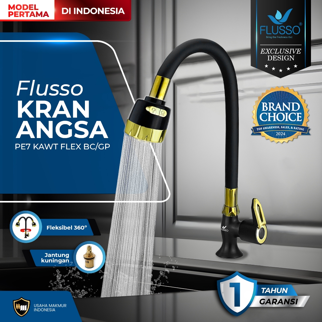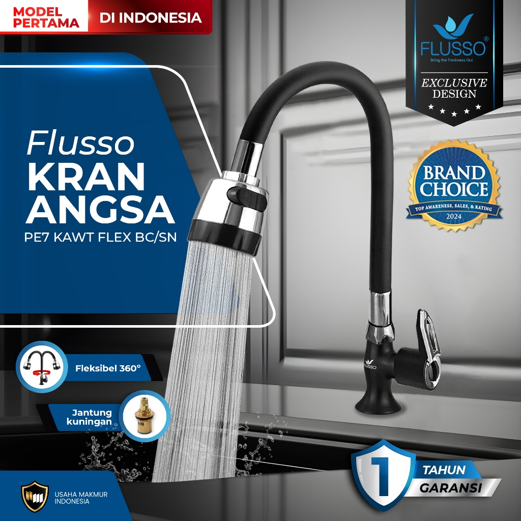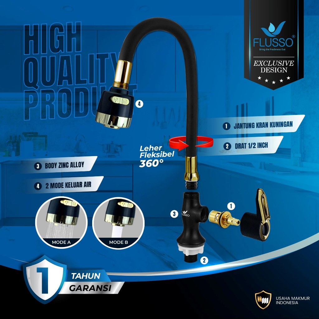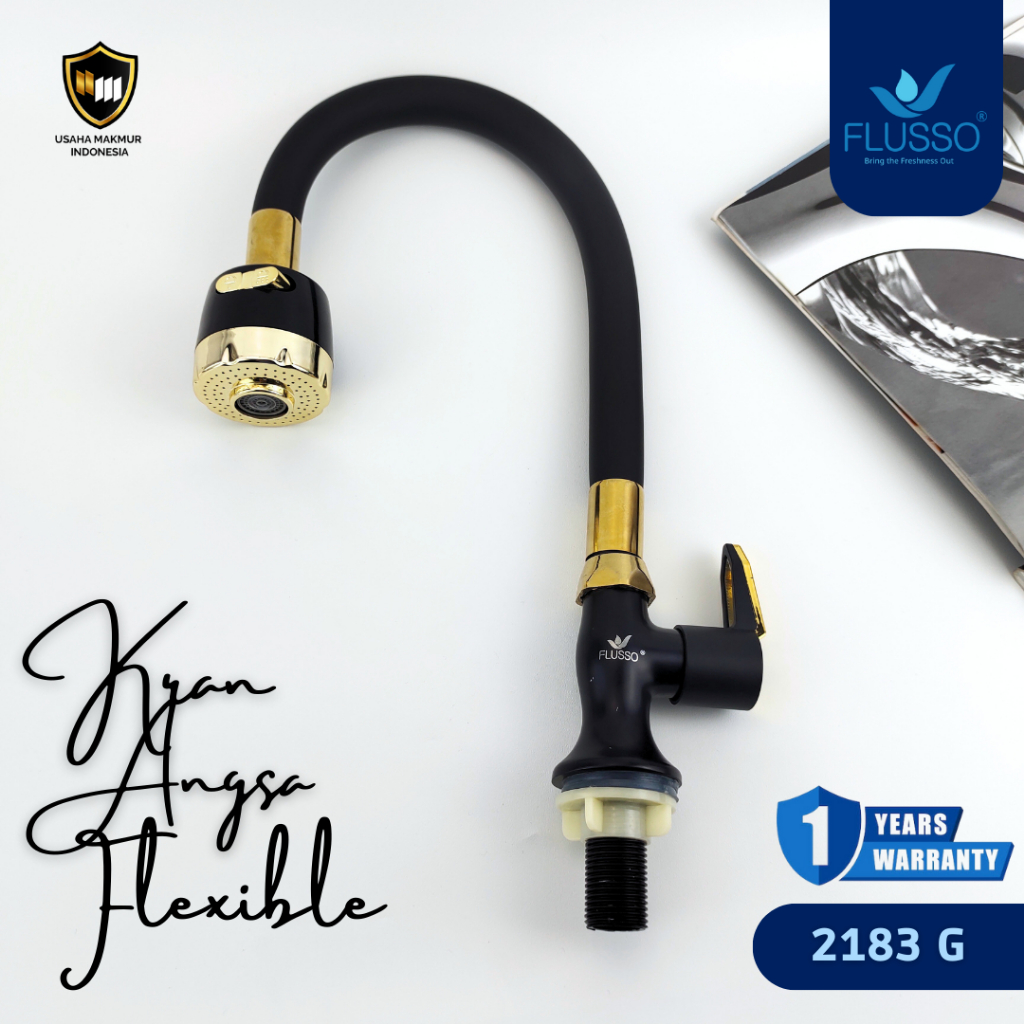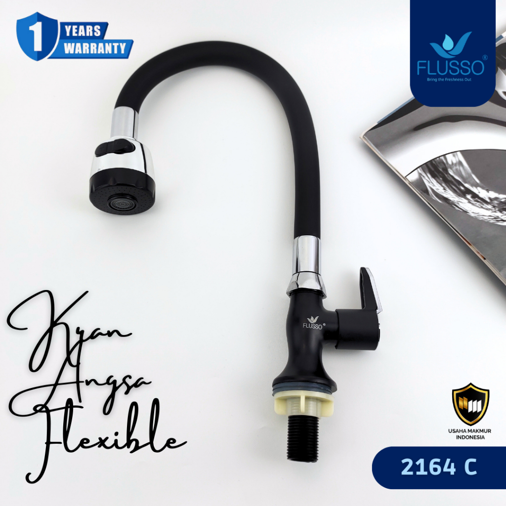 Flusso Kran Leher Angsa Wastafel Flexible Black Original Garansi 1 Tahun 2164 / 2183