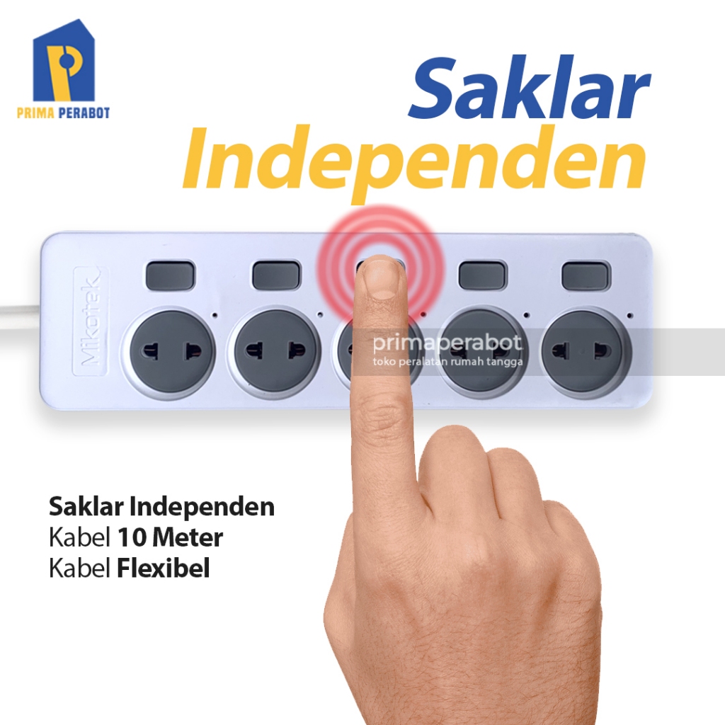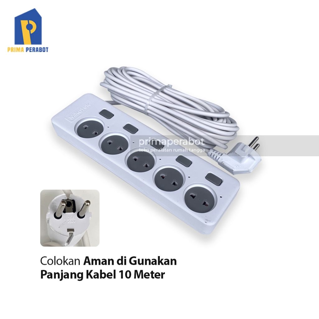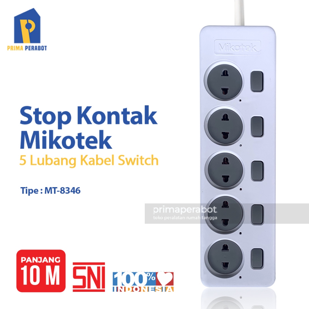 Stop Kontak Switch Terminal Listrik 5 Lubang 10 Meter Mikotek MT-8346-5