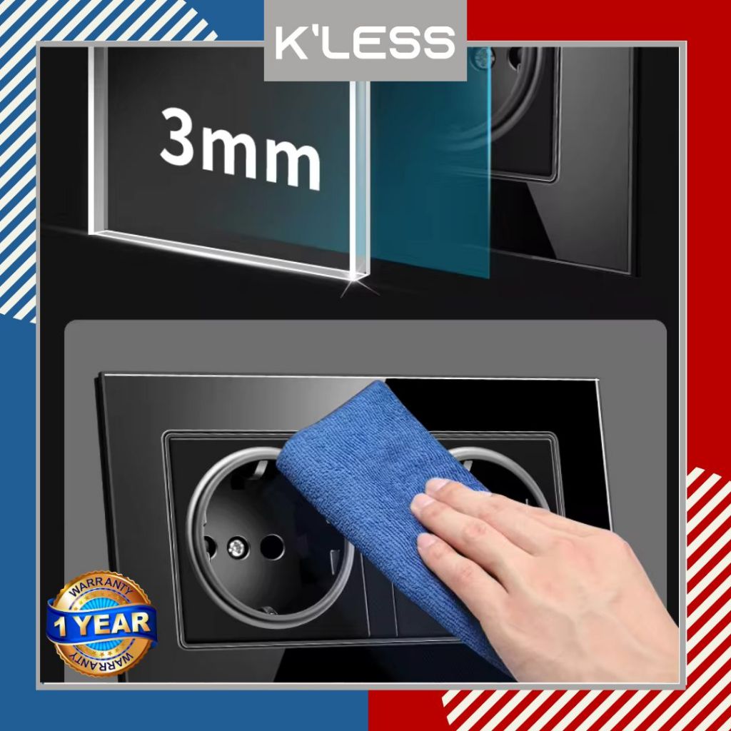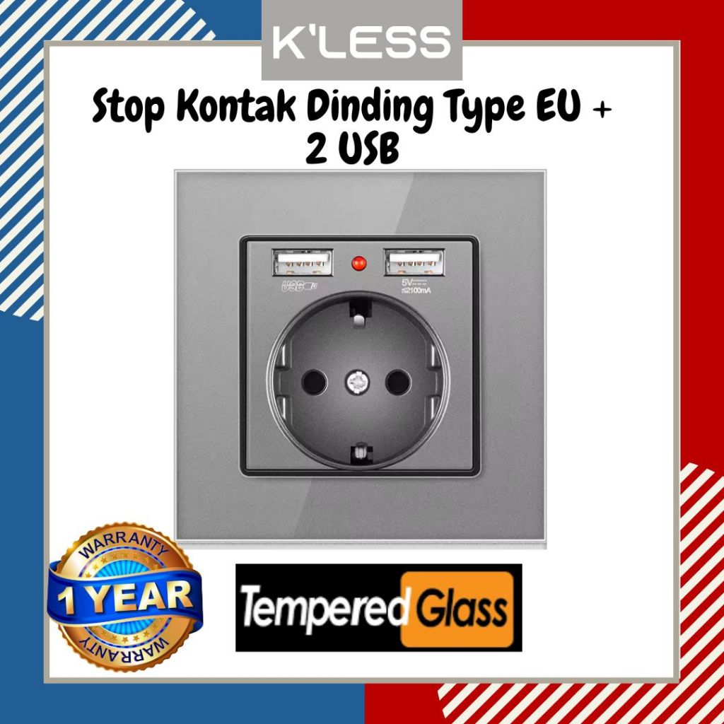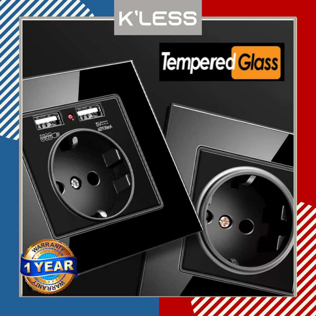 Kless Stop Kontak Dinding Tanam Wall Socket Tempered Glass with 2 USB