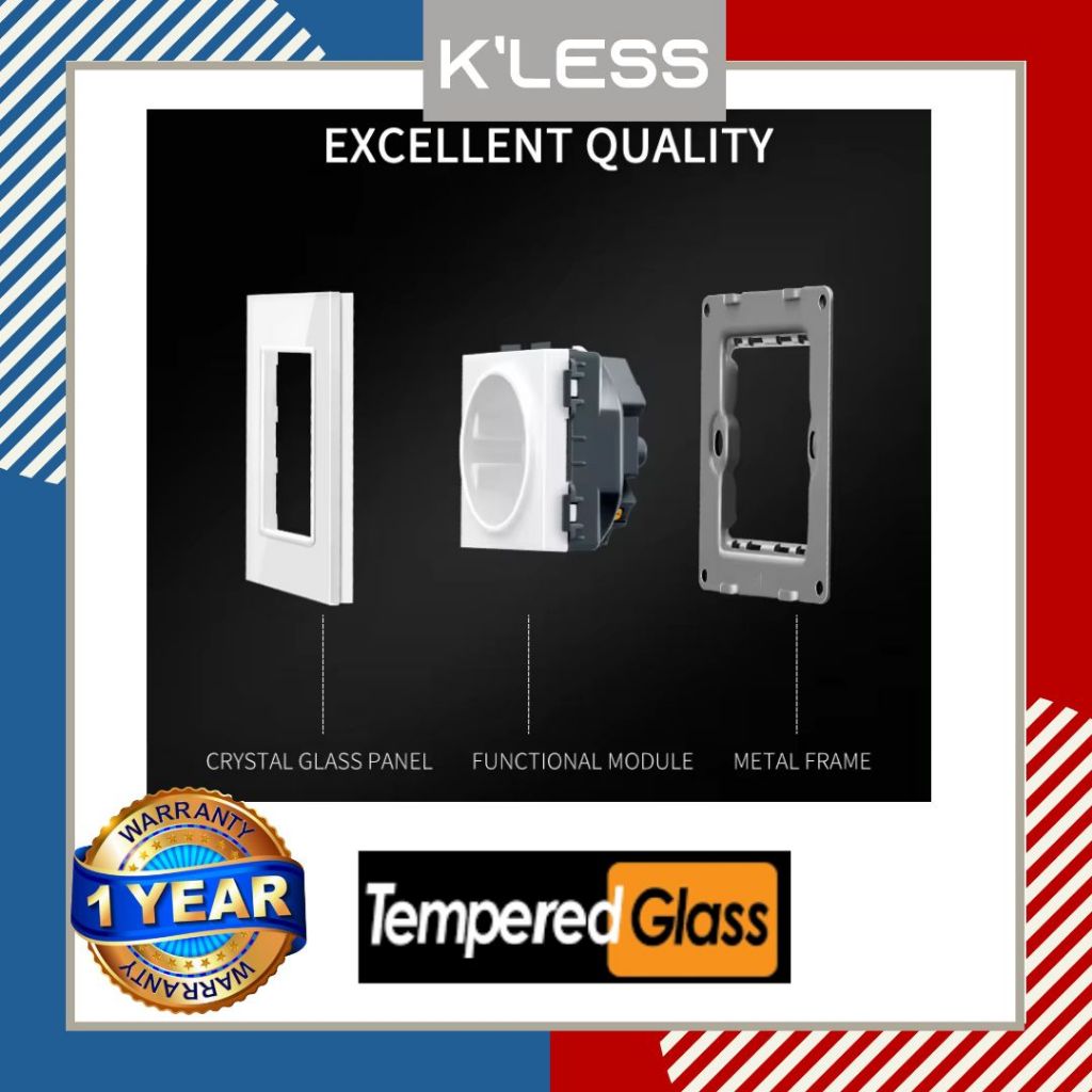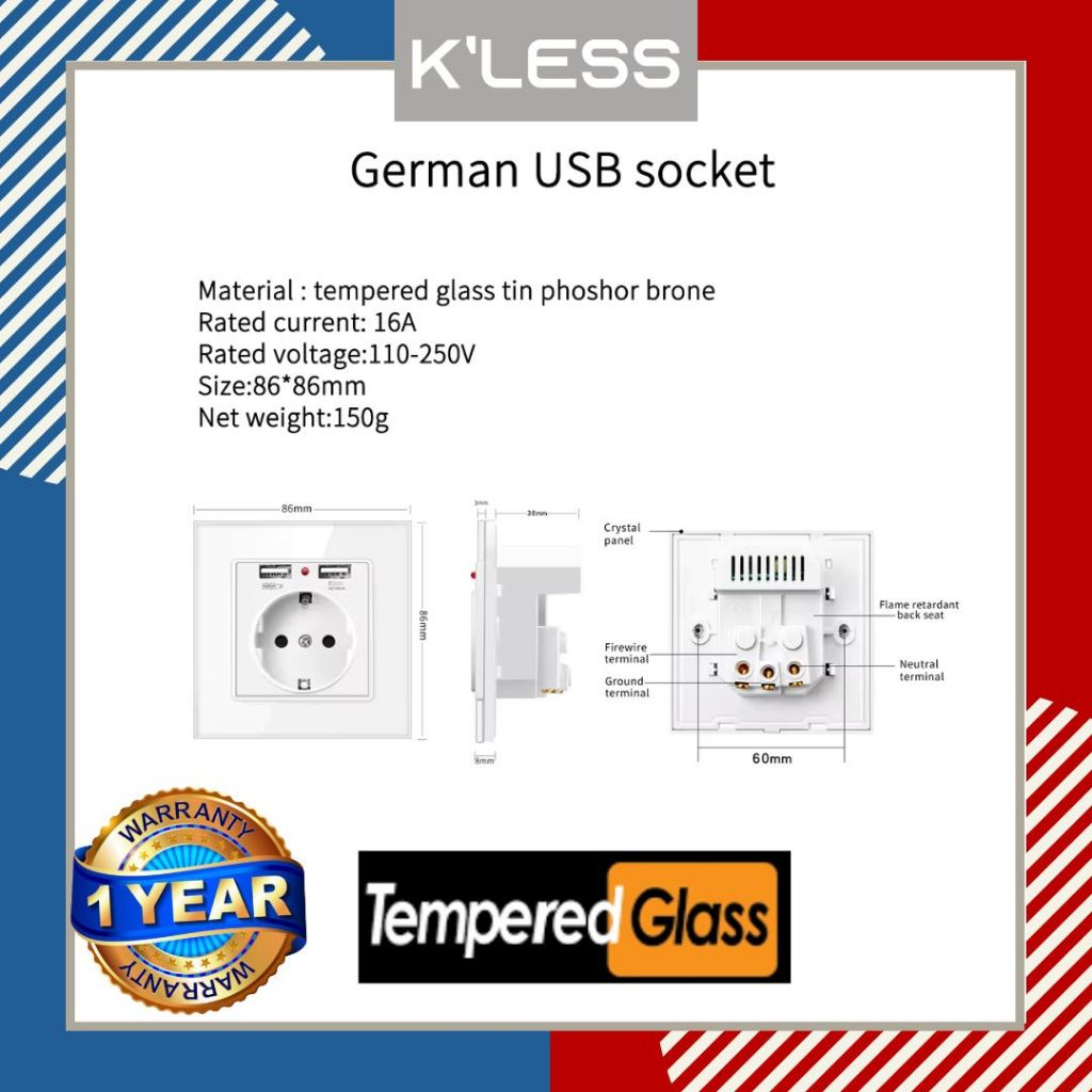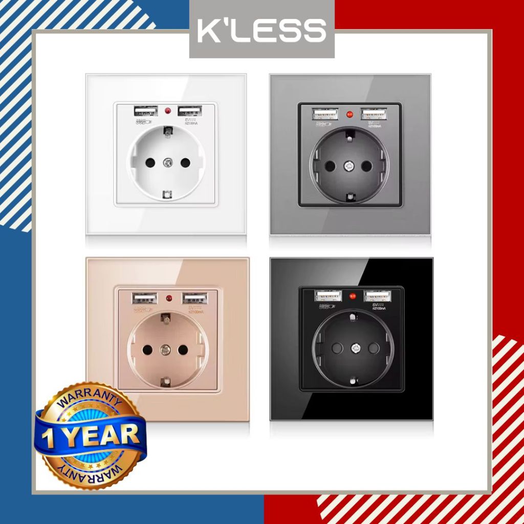 Kless Stop Kontak Dinding Tanam Wall Socket Tempered Glass with 2 USB