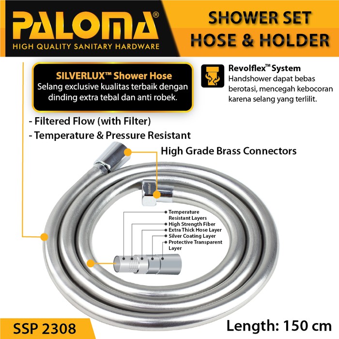 SHOWER SET SSP 2308 PALOMA HAND SHOWER SET PREMIUM LENGKAP FLEXIBLE DAN HOLDER SHOWER KAMAR MANDI