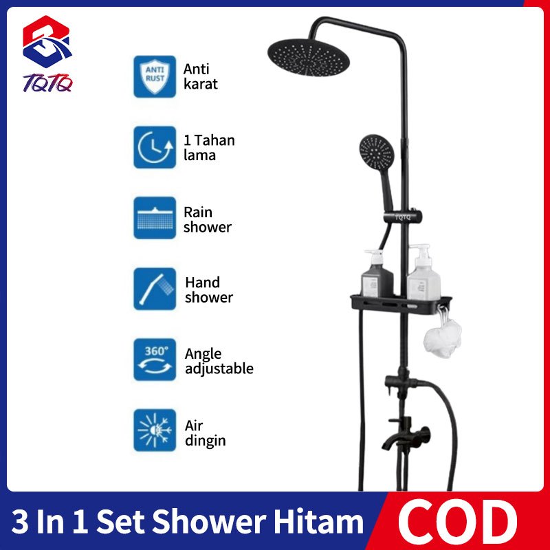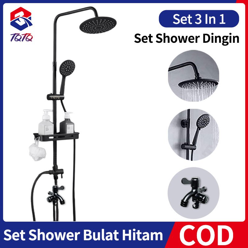 TQTQ Paket Shower Kamar Mandi Bulat Stainless Wall Mounted Hitam Set