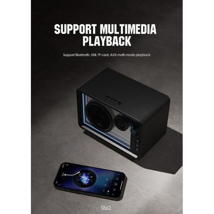 SPEAKER LENYES S862 SPEAKER OUTDOOR KTV 120W WIRELESS SPEAKER+DUAL MICROPHONE KARAOKE BLUETOOTH 5.3 BASS BOOST ABYSS