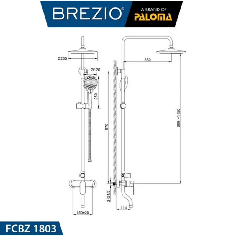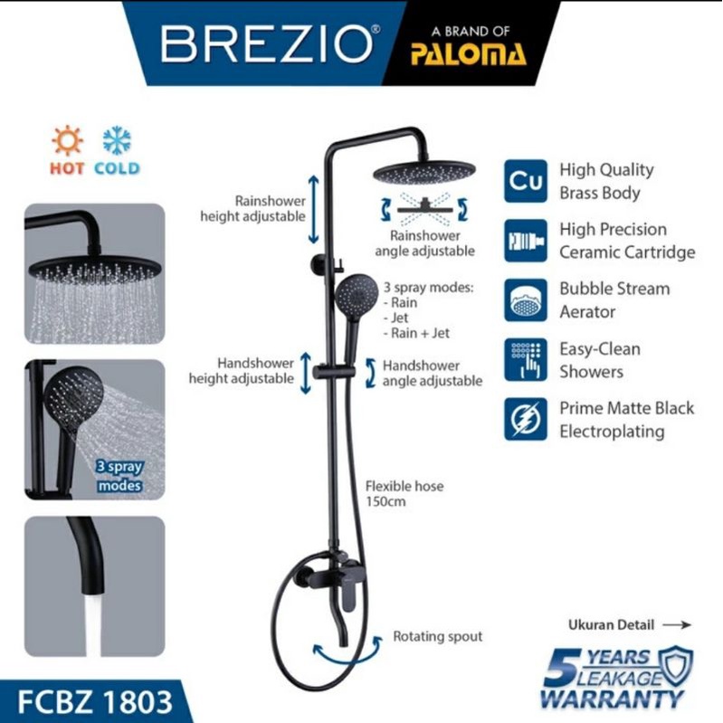 Brezio FCBZ 1803 Shower Tiang Black Hitam Column Set Keran Kran Panas Dingin Mandi