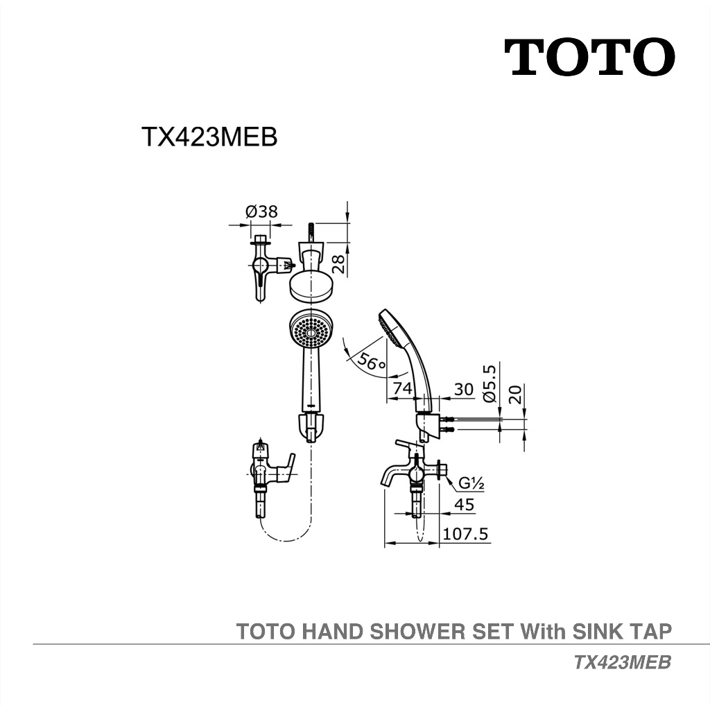 TOTO Hand Shower Set with Sink Tap TX423MEB | Set Shower dan Keran