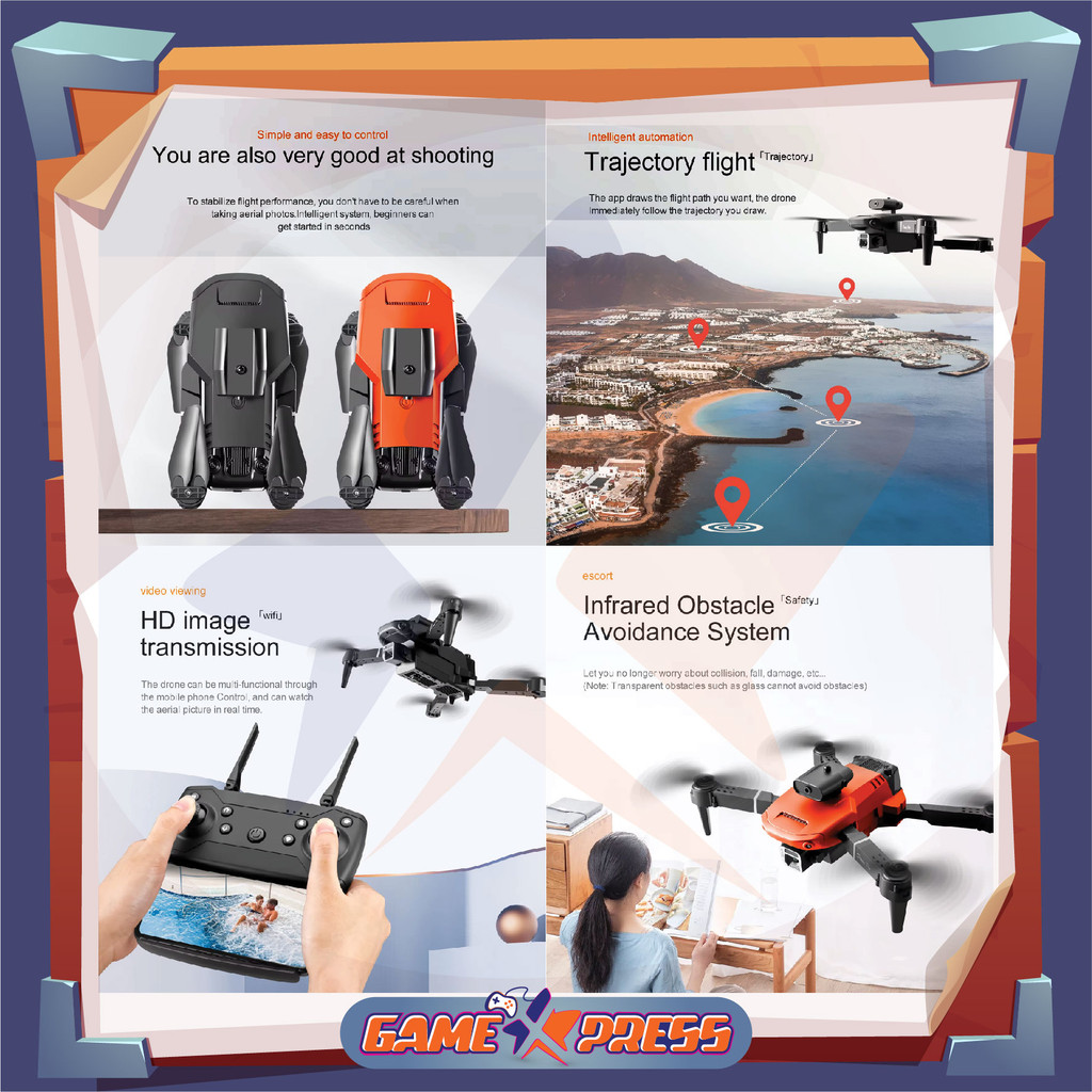 Drone E100 Sensor Anti Tabrak Dual Kamera Obstacle Avoidance Camera 4K UltraHD BERGARANSI RESMI - GameXpress