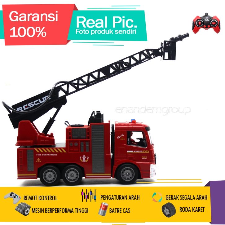 Mainan Mobil Remot Kontrol RC Truk Pemadam Kebakaran Semprot Premium Sirine LED