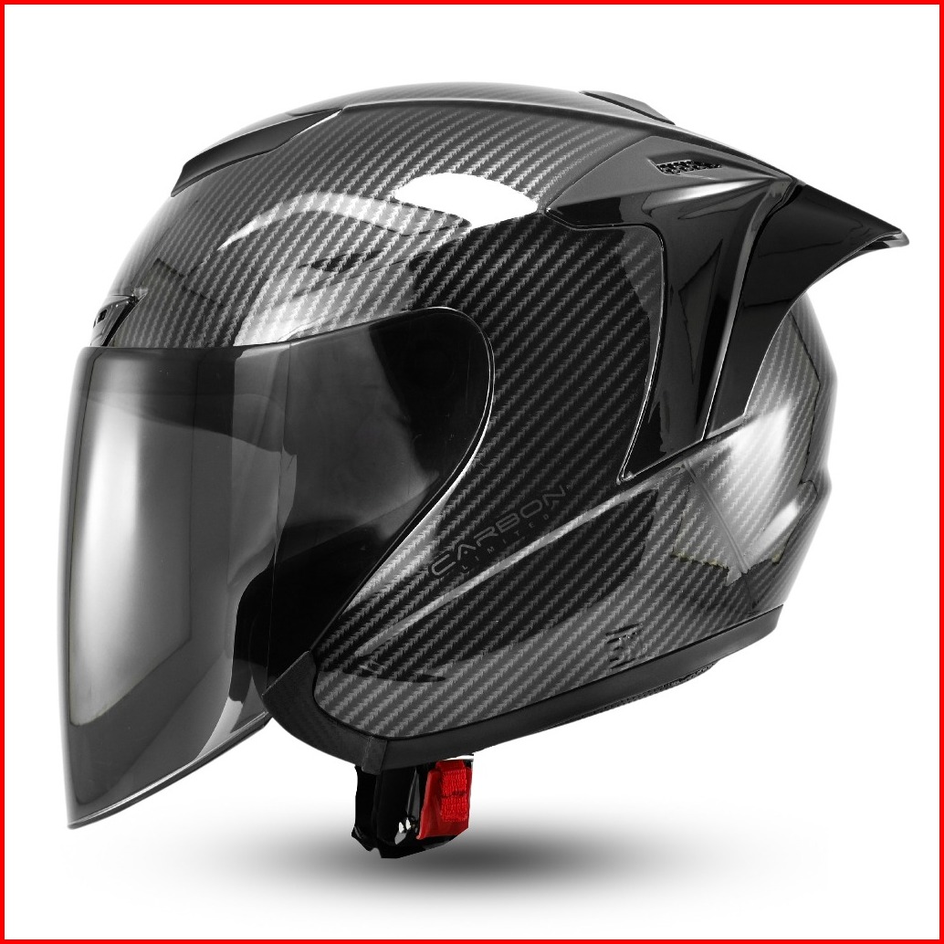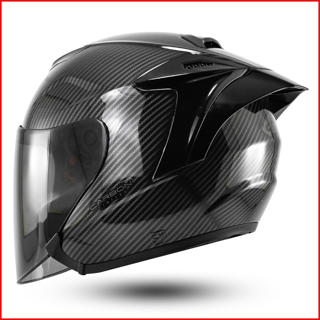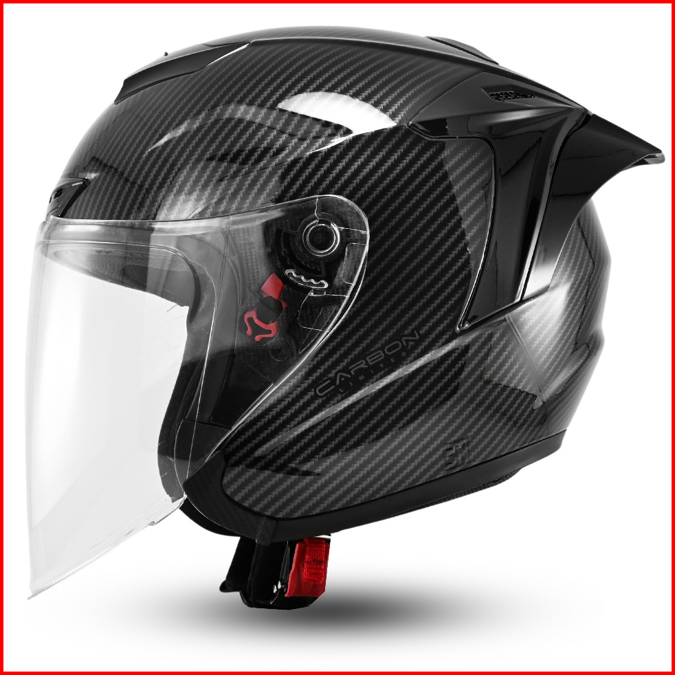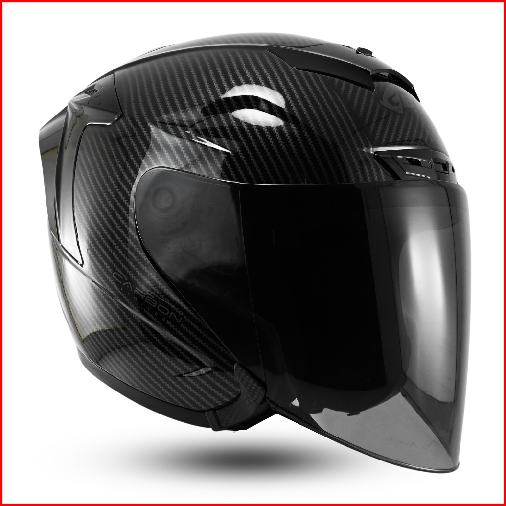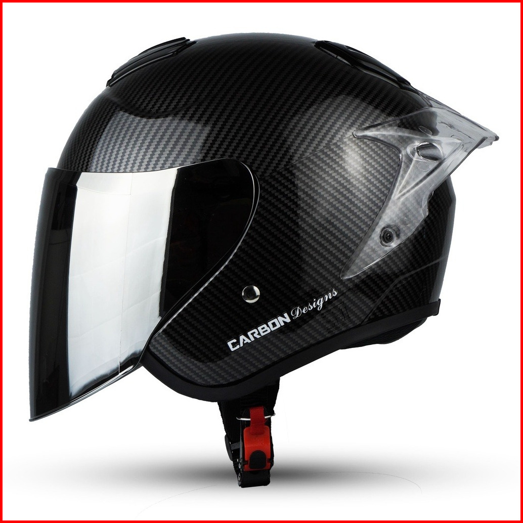 Helm Half Face Bipplast Pro Z Motif Carbon Sni Visor Silver