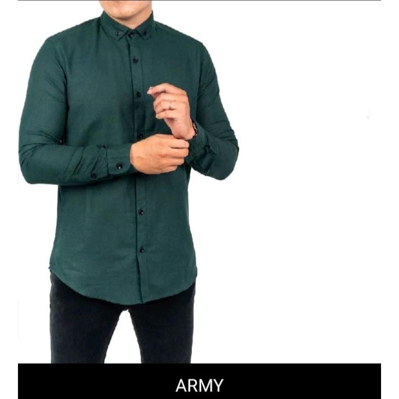 (Gratis Ongkir) Kemeja pria Kemeja Pria Lengan Panjang Slimfit Kasual Polos