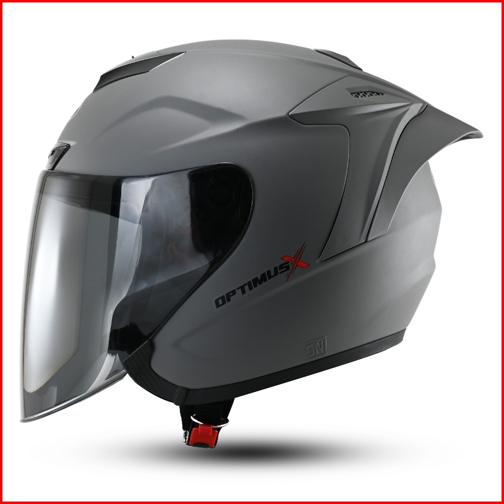 Helm Half Face Grey Doff Sni Visor Clear Optimus X Solid