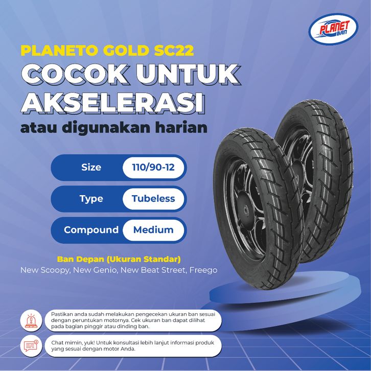 PLANET BAN RING 12 Planeto Gold SC22 - Ban Motor 110/90 Presa PS588 100/90 Gold SC22-100/90 ORINGINAL