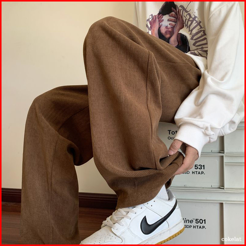 Celana Corduroy Panjang Pria Celana Korduroy Korean Style Baggy Pants Coklat Retro Celana Kulot Pria Oversize Cordutoy P