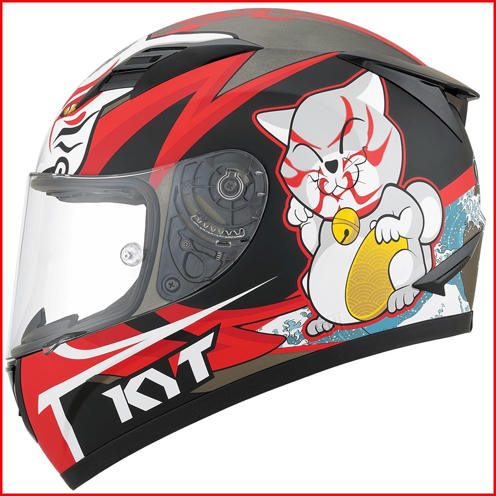 Helm Kyt R10 Flat Pinlock Kabuki Cat Visor Clear - Gunmetal Matt Red