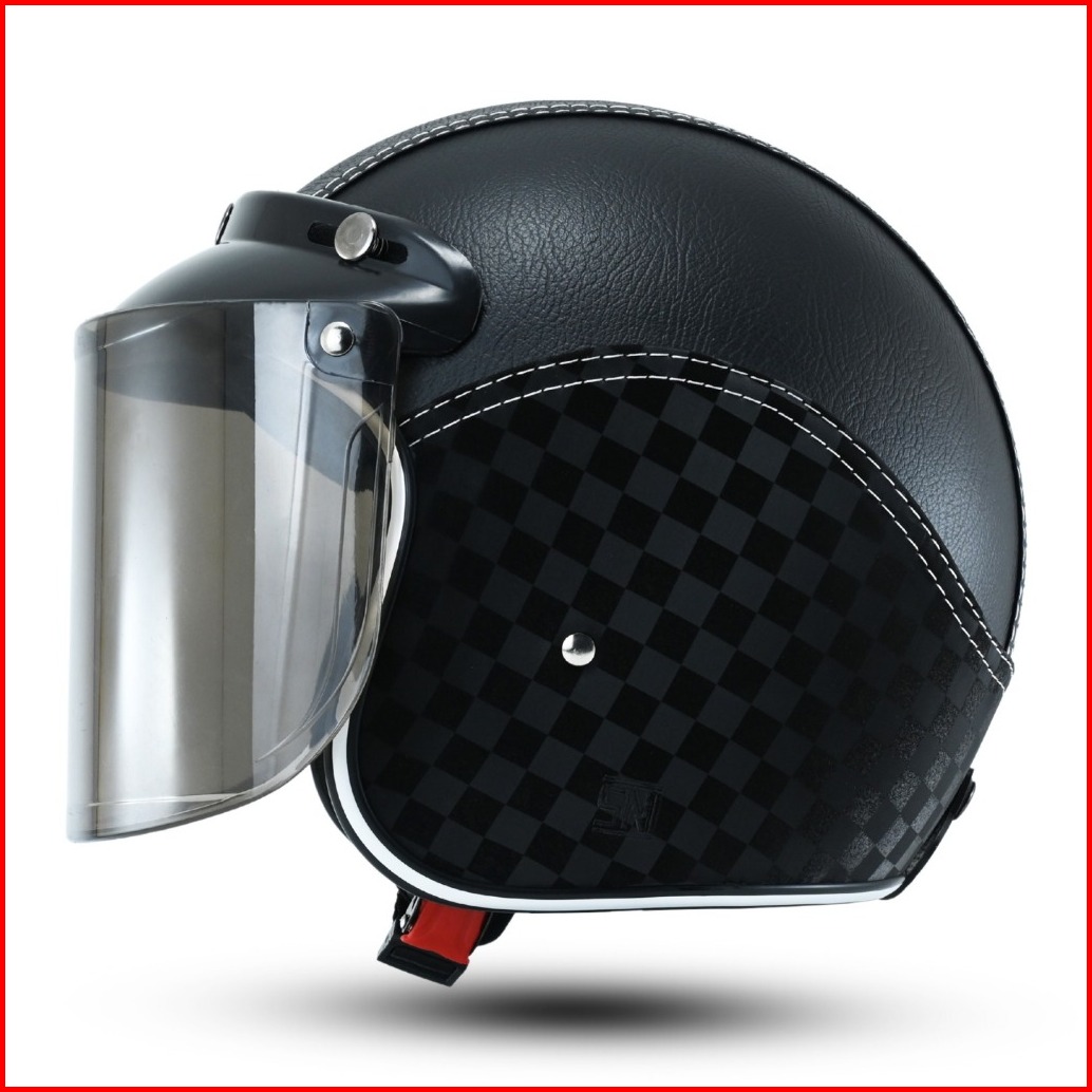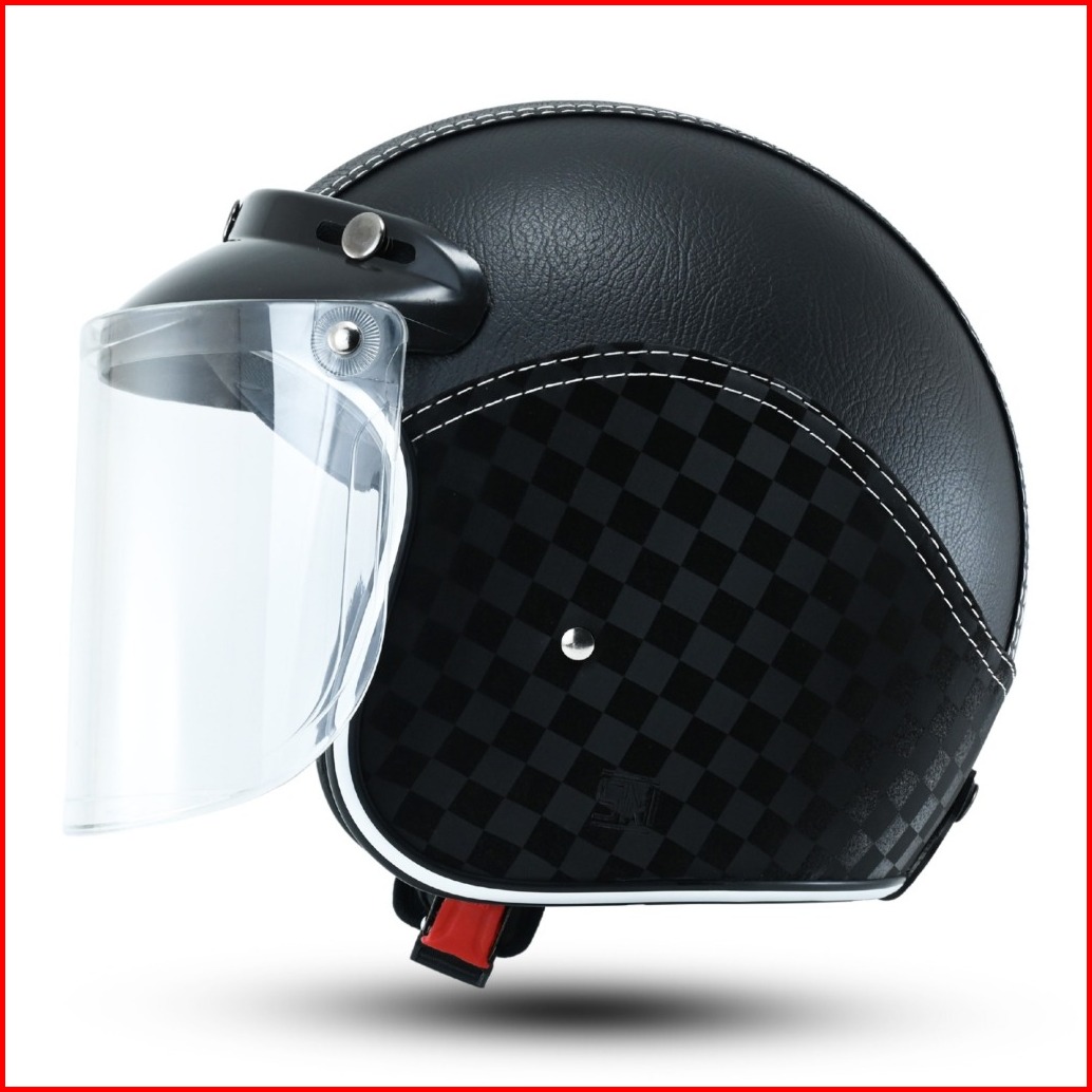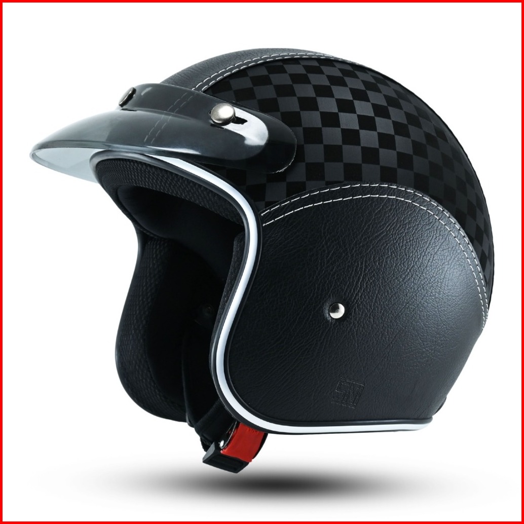 Helm Retro Full Kulit Carbon 3d Terbaru List Chrome Pria Wanita Dewasa Kaca Sni Motorcycle