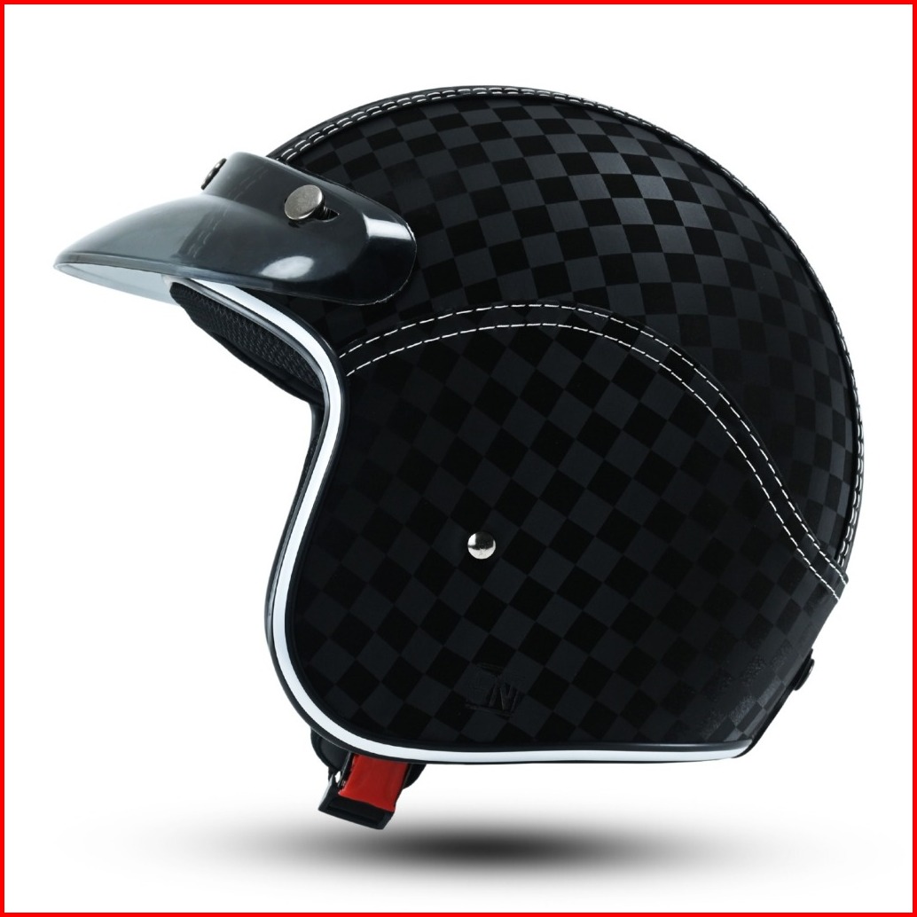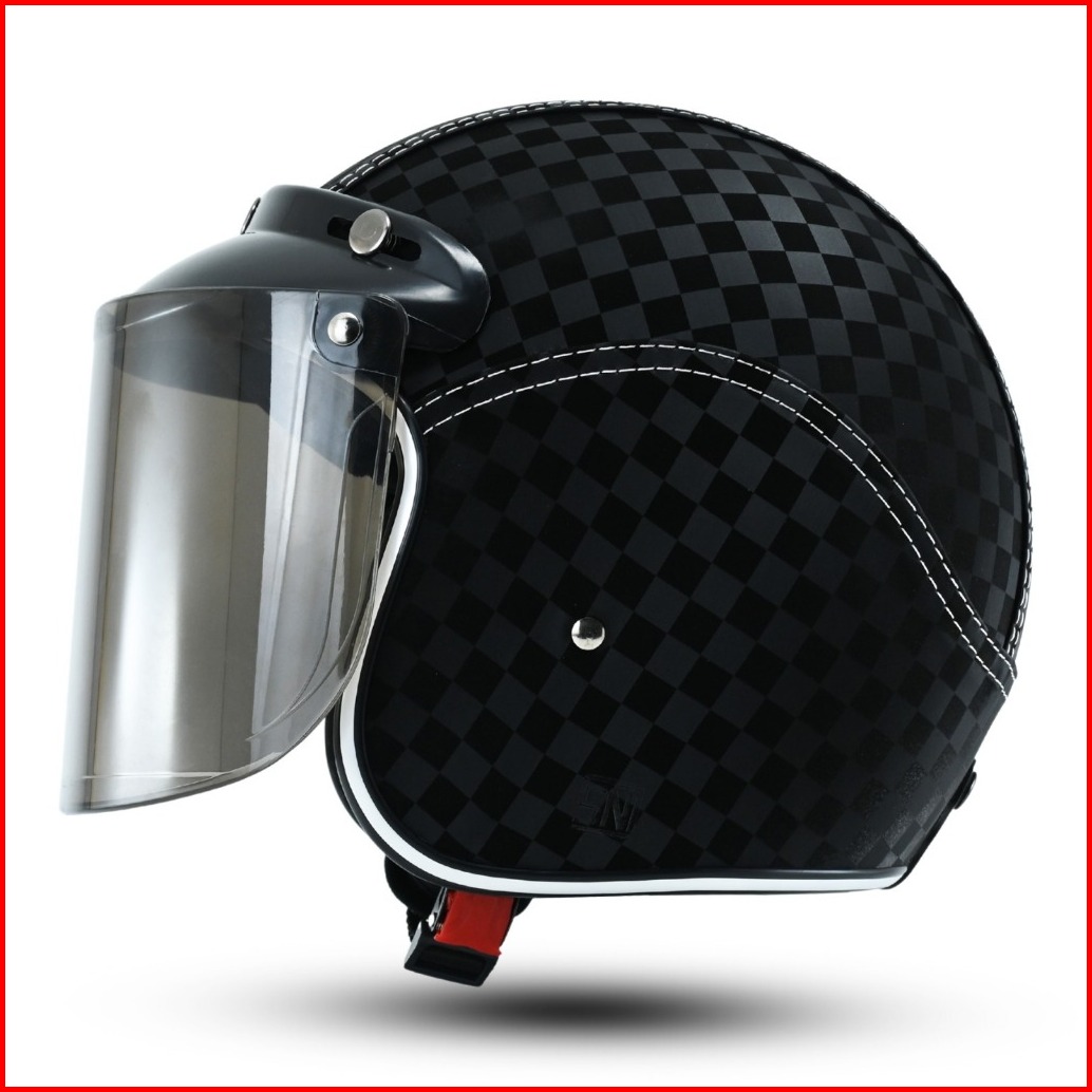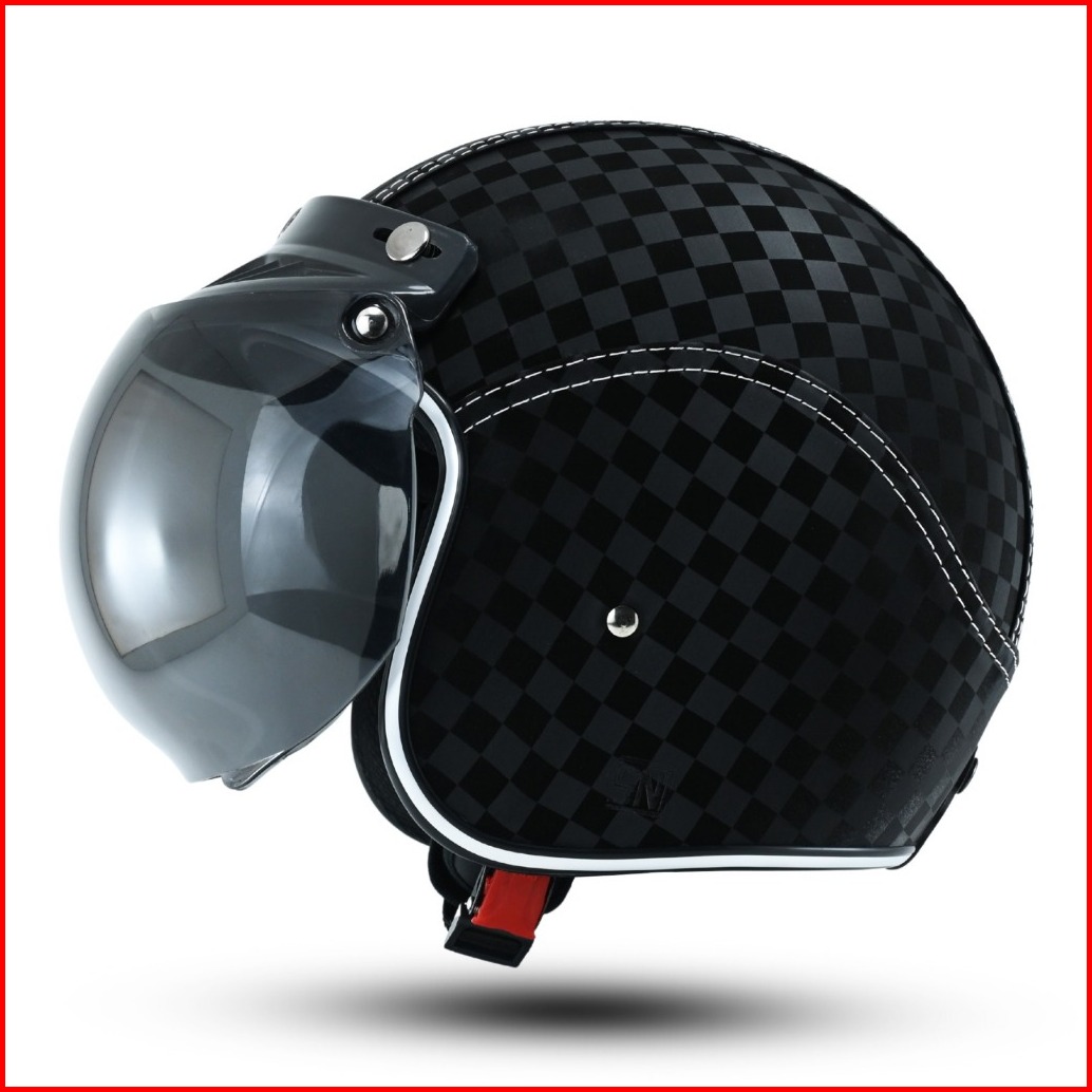 Helm Retro Full Kulit Carbon 3d Terbaru List Chrome Pria Wanita Dewasa Kaca Sni Motorcycle