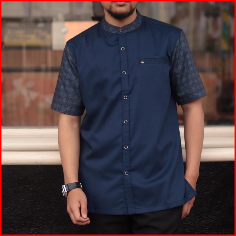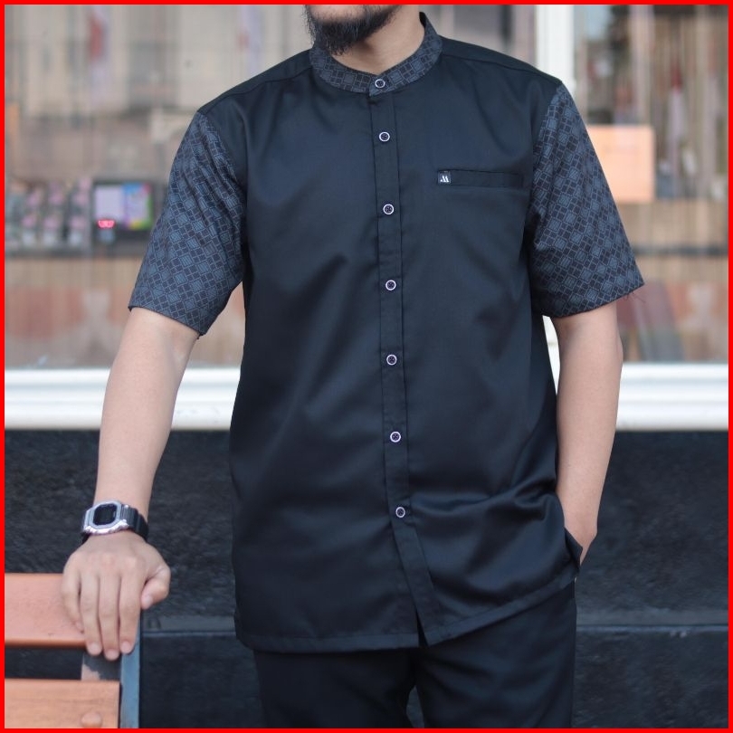 Kemeja Sumando-kemeja Pria Lengan Pendek Motif Embos Full Kancing