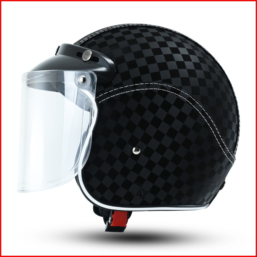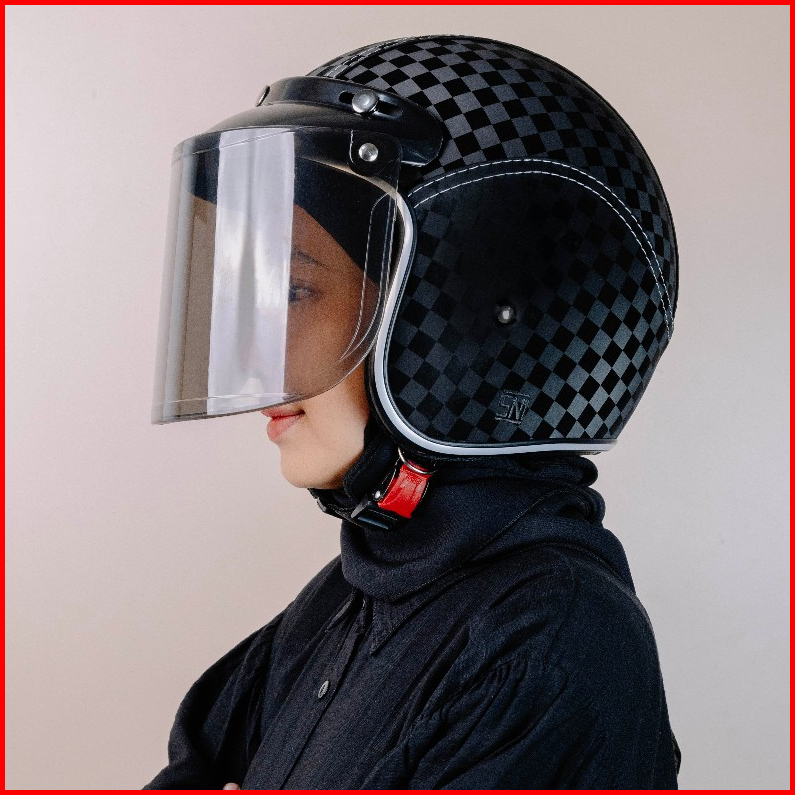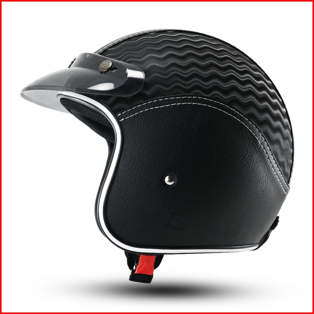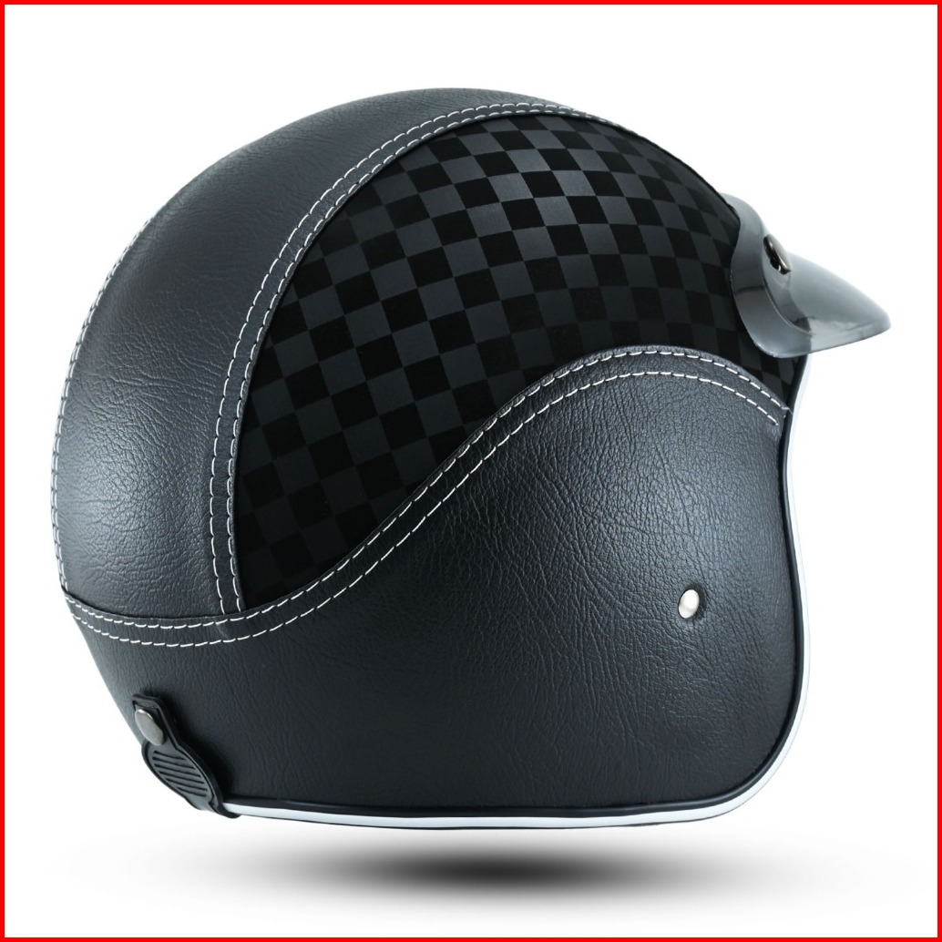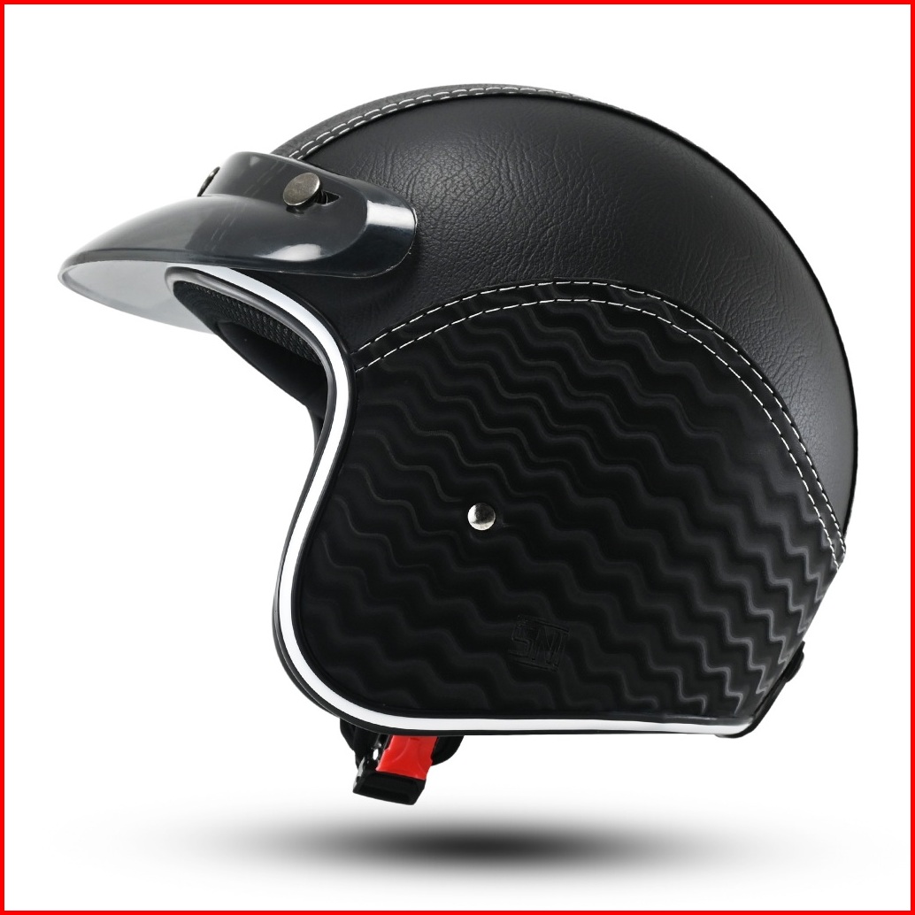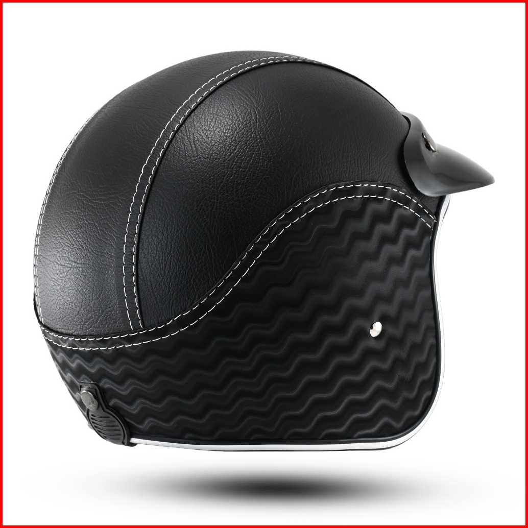 Helm Full Kulit Motif Carbon 3d Retro List Chrome Pria Wanita Dewasa Kaca Sni Motorcycle