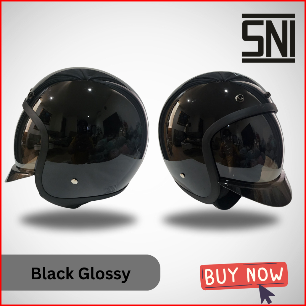 Helm Bogo Dewasa Hds Sni Magnum Black Glossy Half Face Retro Pria Wanita Cepol Hijab