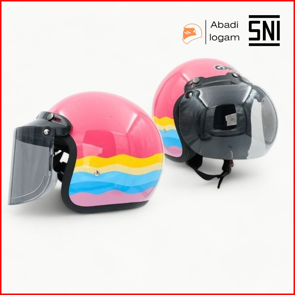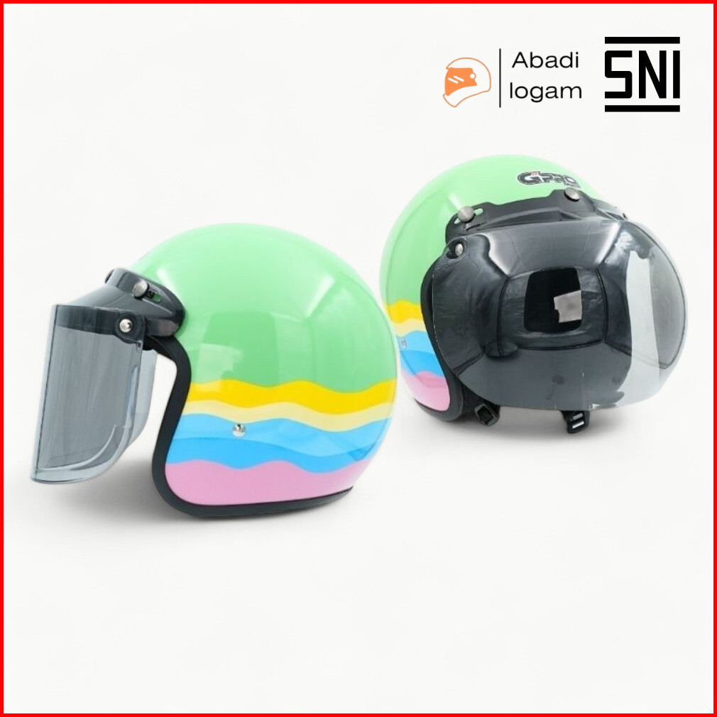 Helm Bogo Dewasa Retro Sni Klasik Motif Ombak - Tampil Stylish Aman