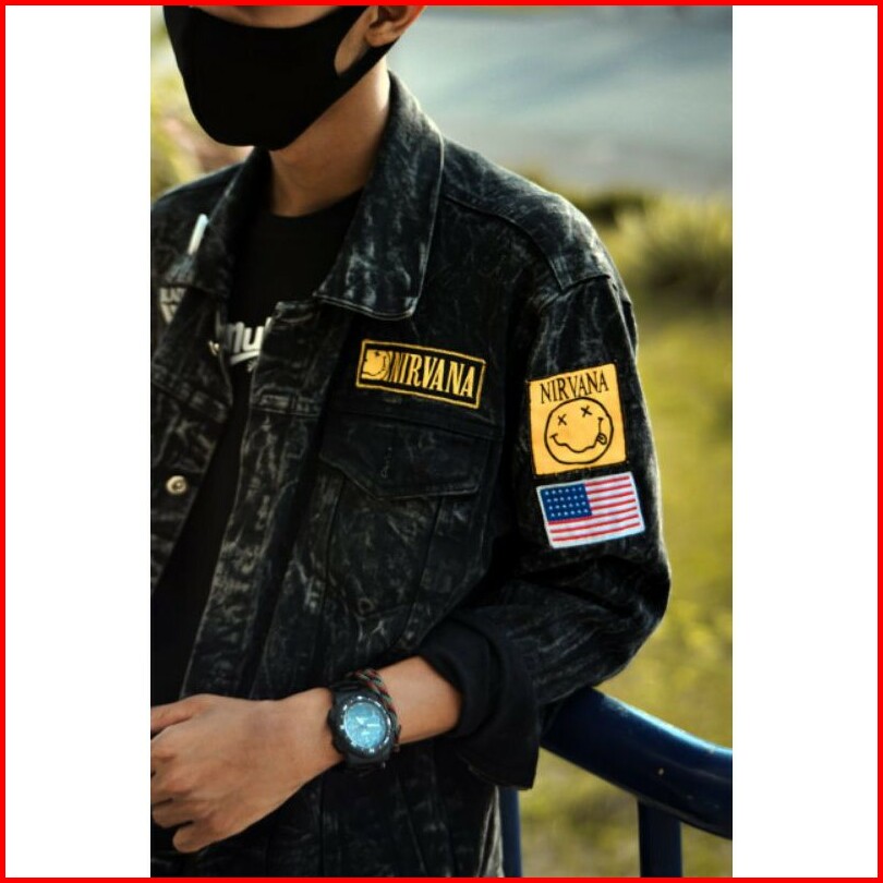 Denim Jaket Full Patch Nirvana Patch Sudah Terpsang