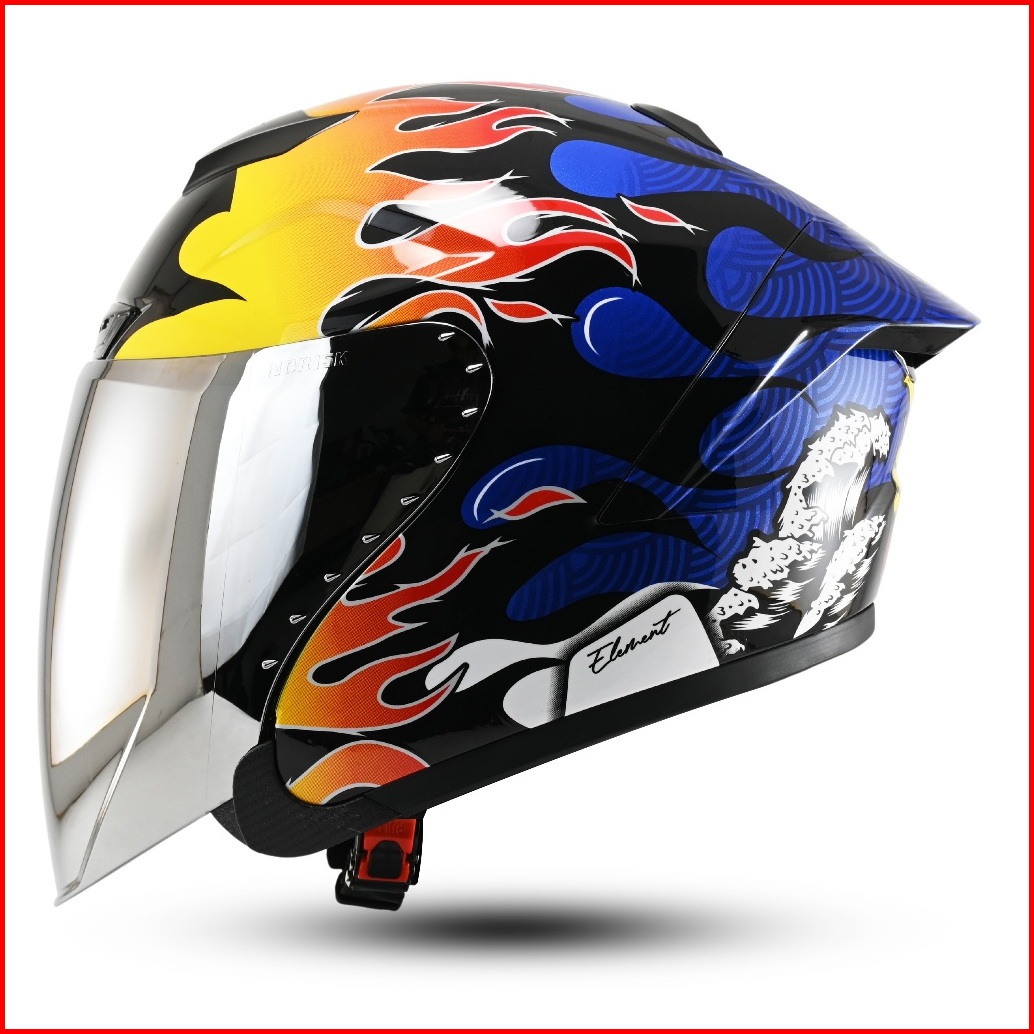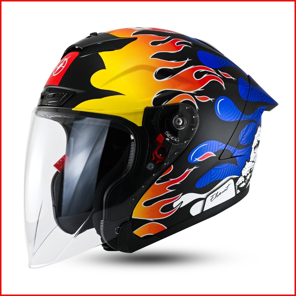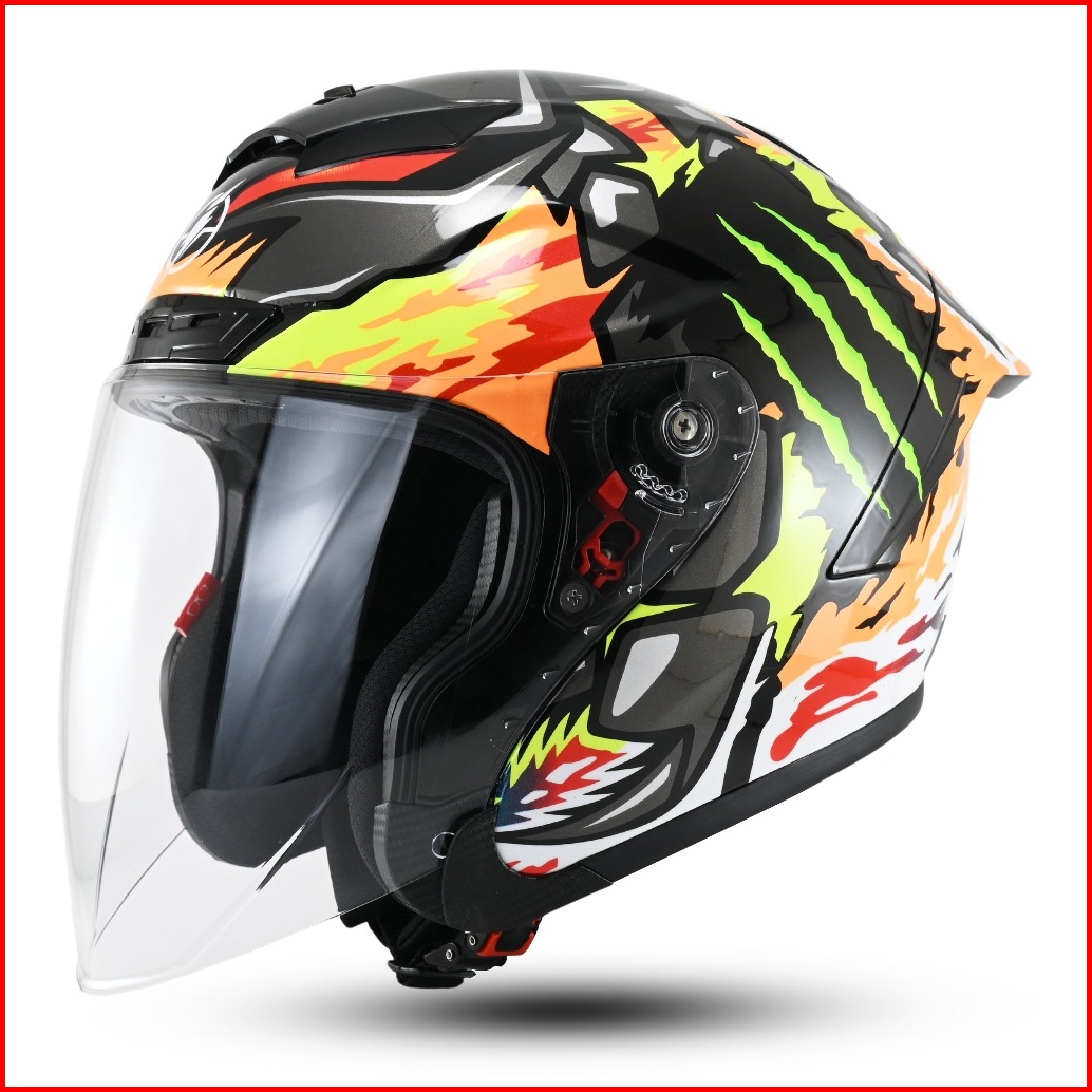 Helm Jitsu J Strike Motif Scorpius Half Face Cowok Keren Sunmori Sni Terbaru Flat Visor Silver