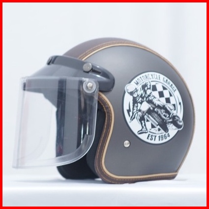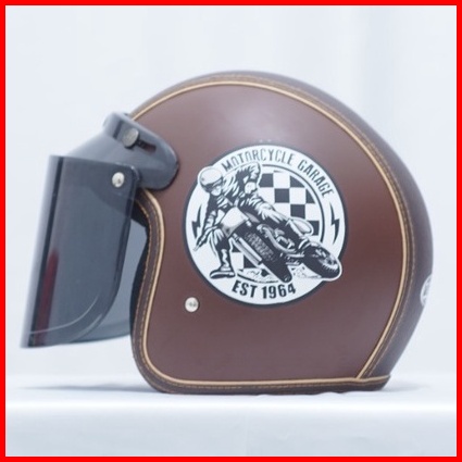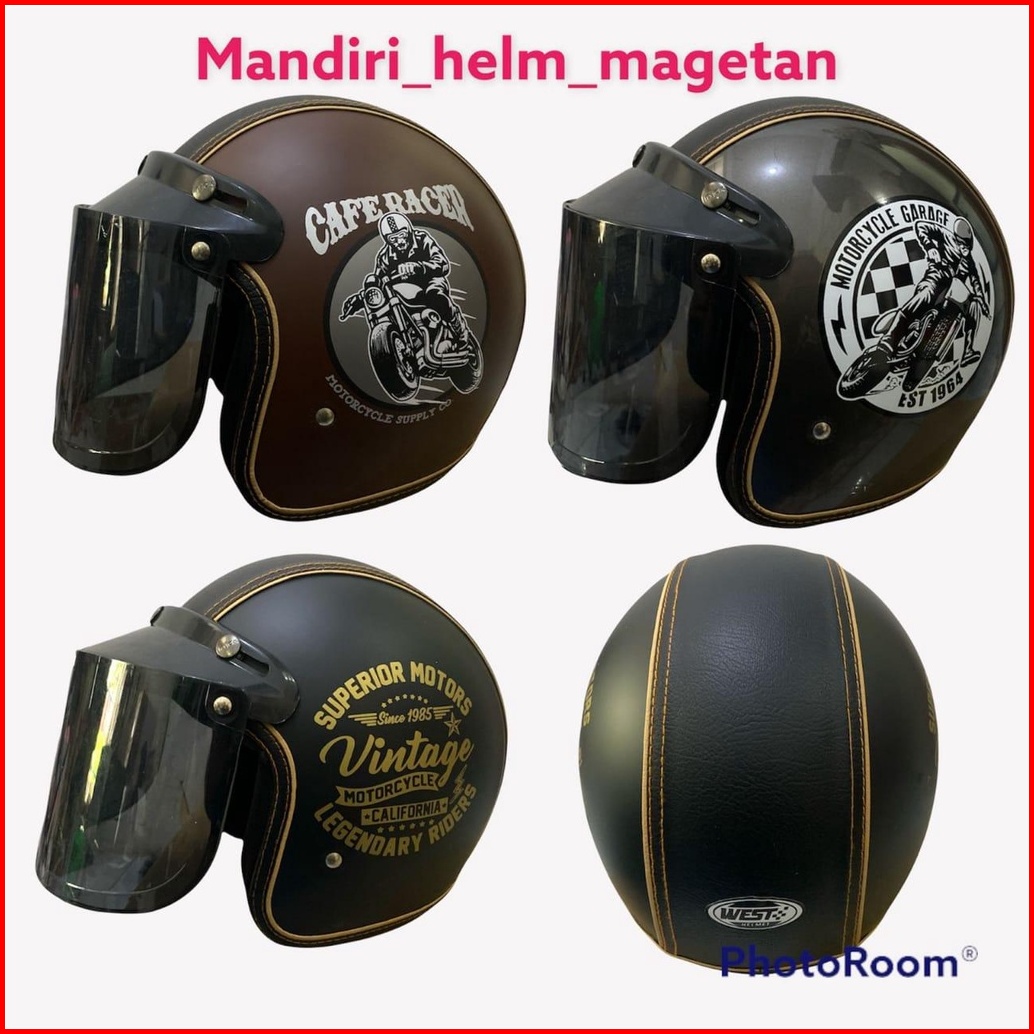 Helm Bogo Dewasa West Semi Kulit Motif Full Leher Sni