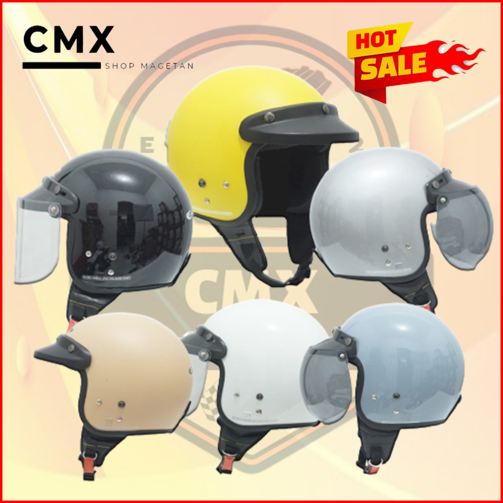 Helm Bogo Dewasa Full Leher Pria Wanita Original Kaca Flat Injak Original 100