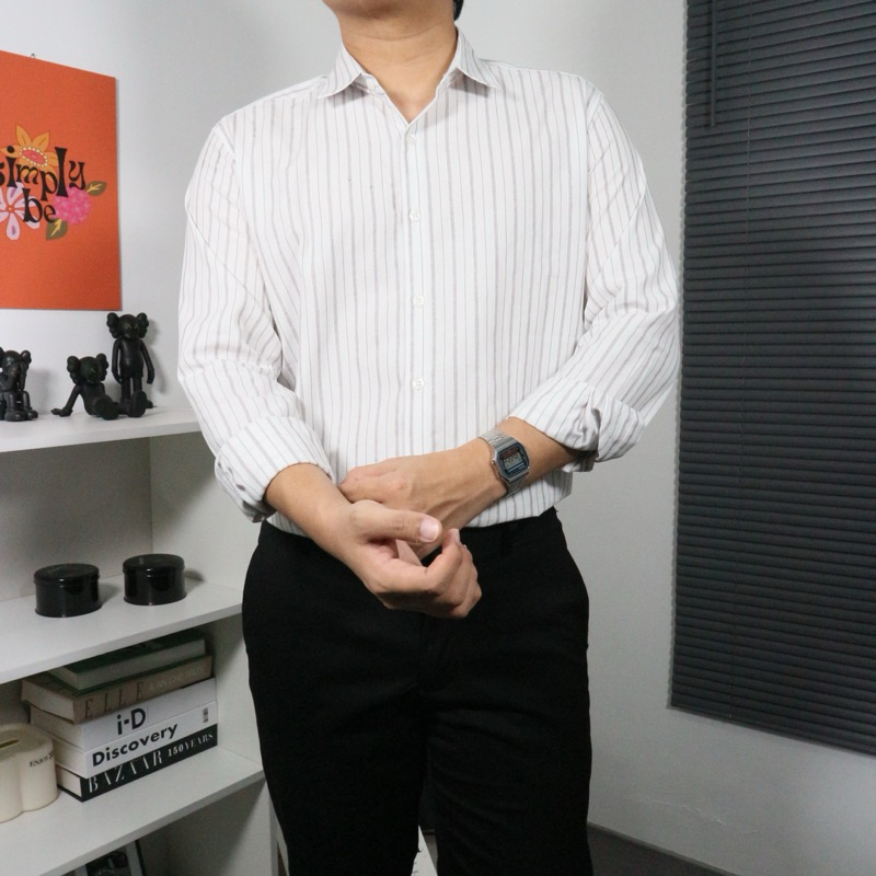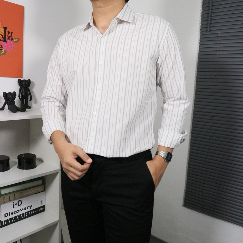 Seven Jobs - Kemeja Stripe Pria Lengan Panjang | Stripes Shirt | Kemeja Salur Lengan Panjang