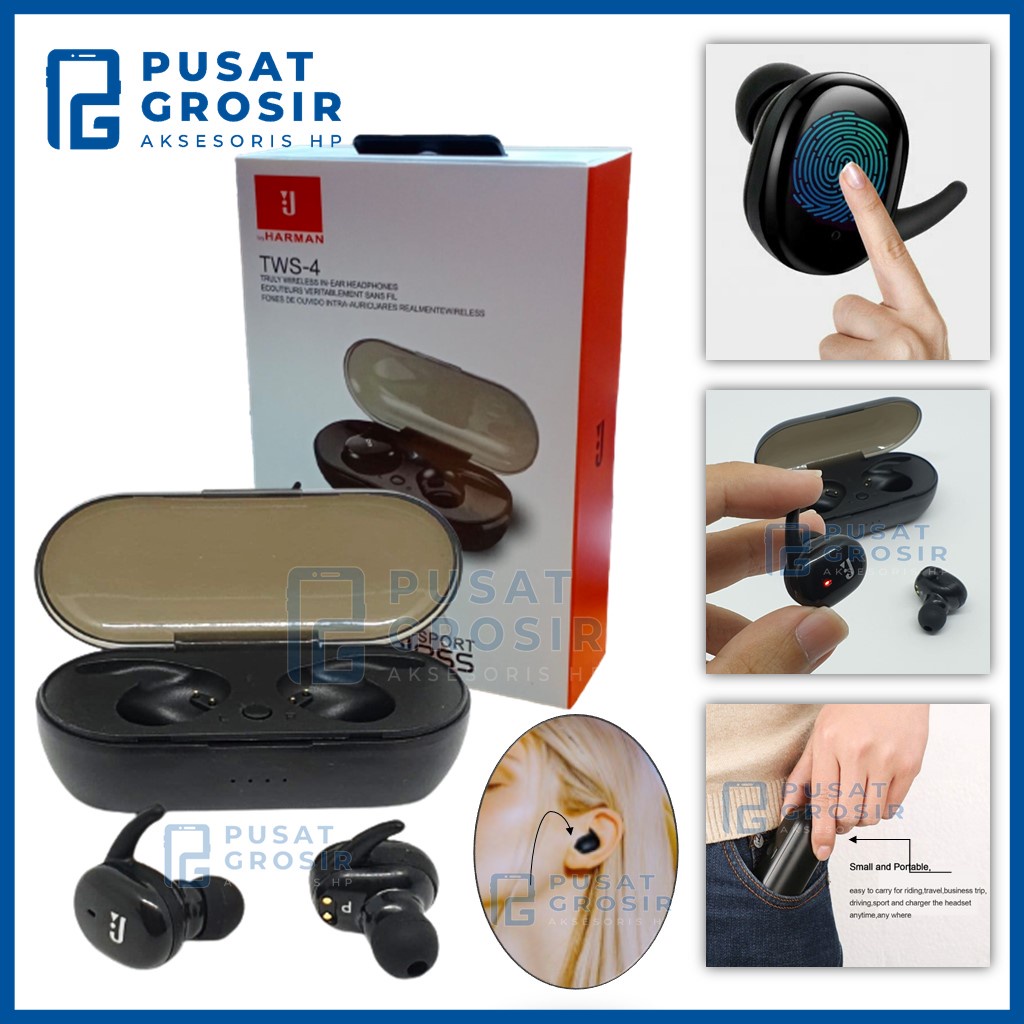 Headset Bluetooth Bass TWS4 TWS-4 Earphone henset blutut murah Hedset tanpa kabel Handsfree aerphone wireless