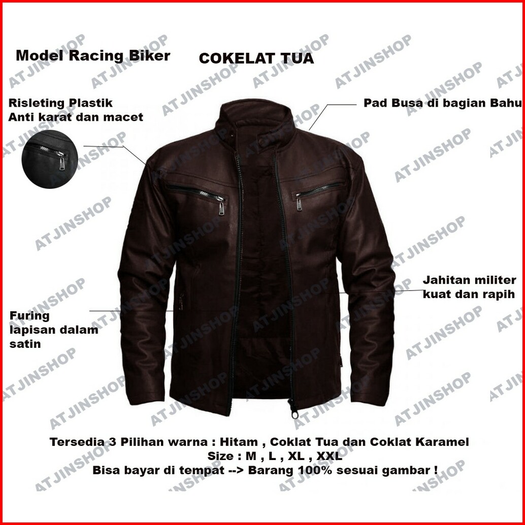 Jaket Kulit Motor Pria Model Racing Bahan Ferrari Full Black Dan Full Brown