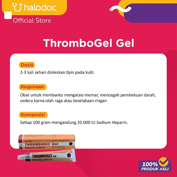 ThromboGel Gel 10 g Flebitis superfisial, penyempitan pembuluh vena, cedera karena olahraga dan kecelakaan.