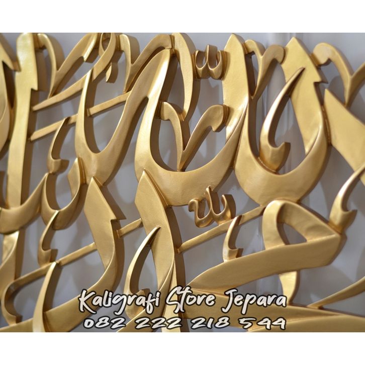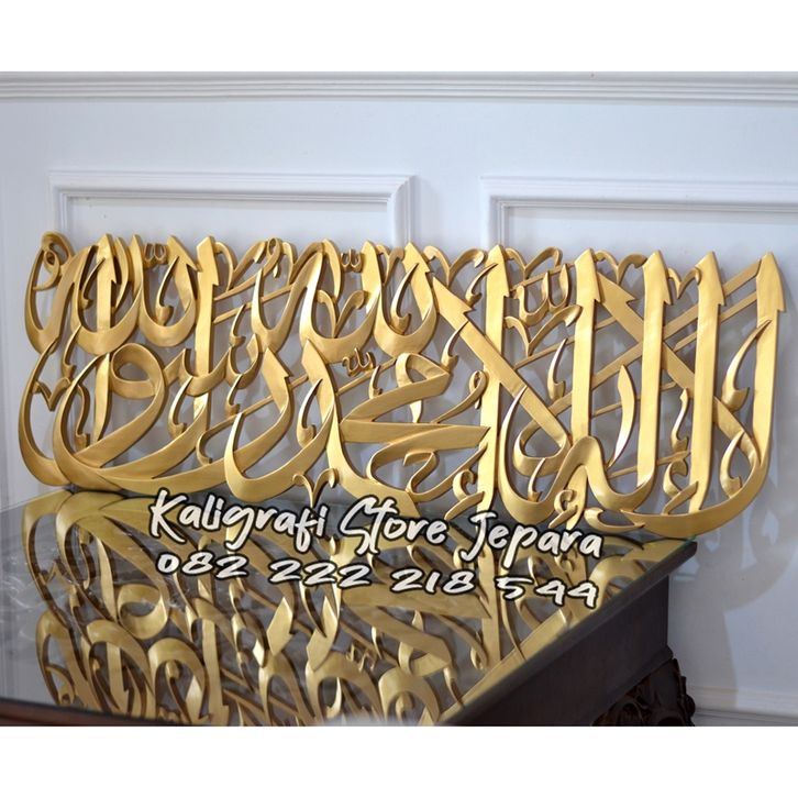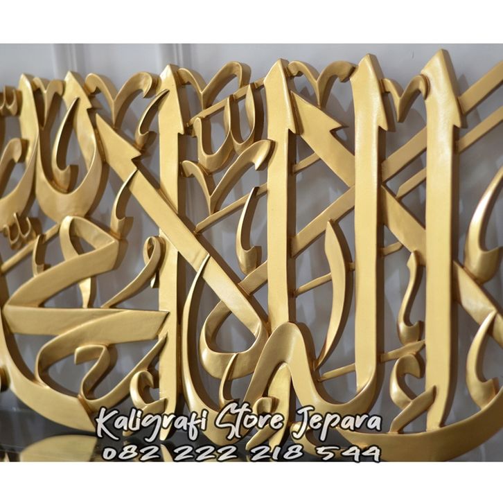 Kaligrafi Kalimat tauhid tahlil kayu jati Ukiran jepara hiasan dinding Aesthetic 120x40