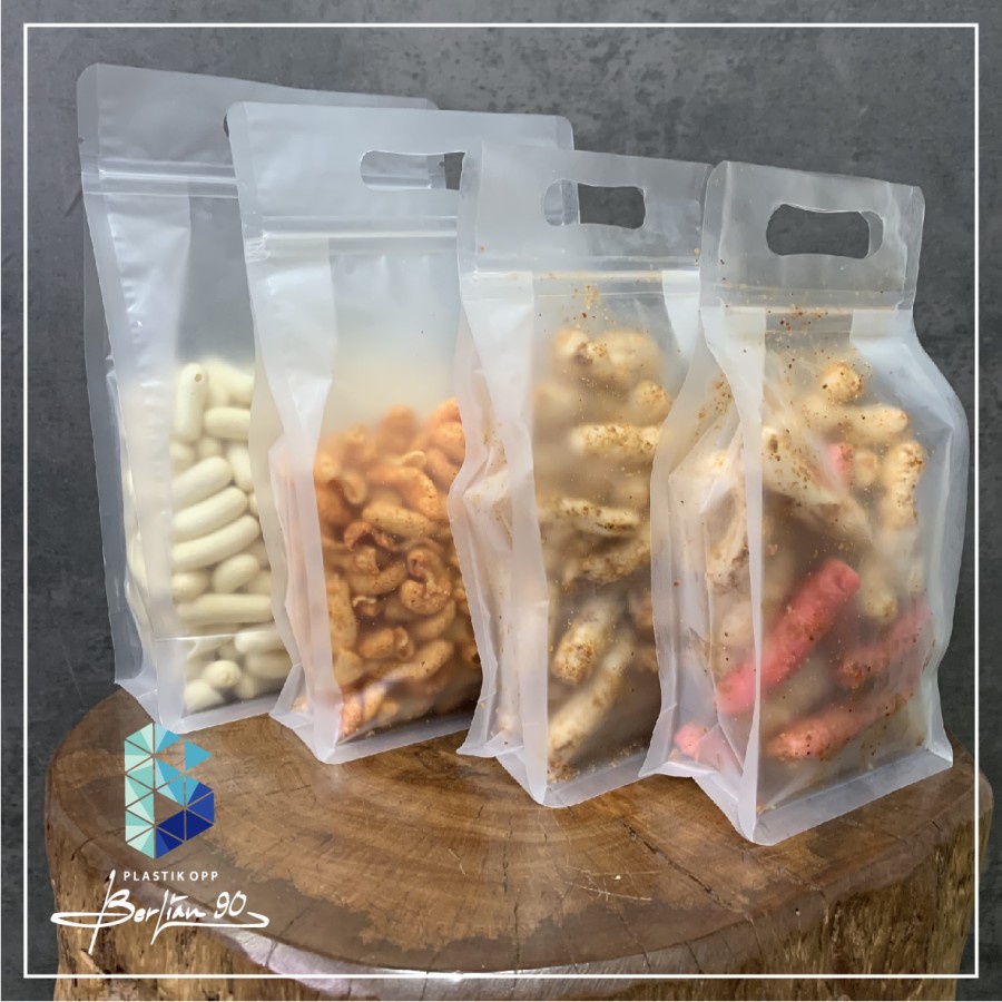 Plastik Klip Snack Standing Handle 10x20 cm / Plastik Snack Keripik Berdiri 10 x 20 cm isi 50 pcs Termurah