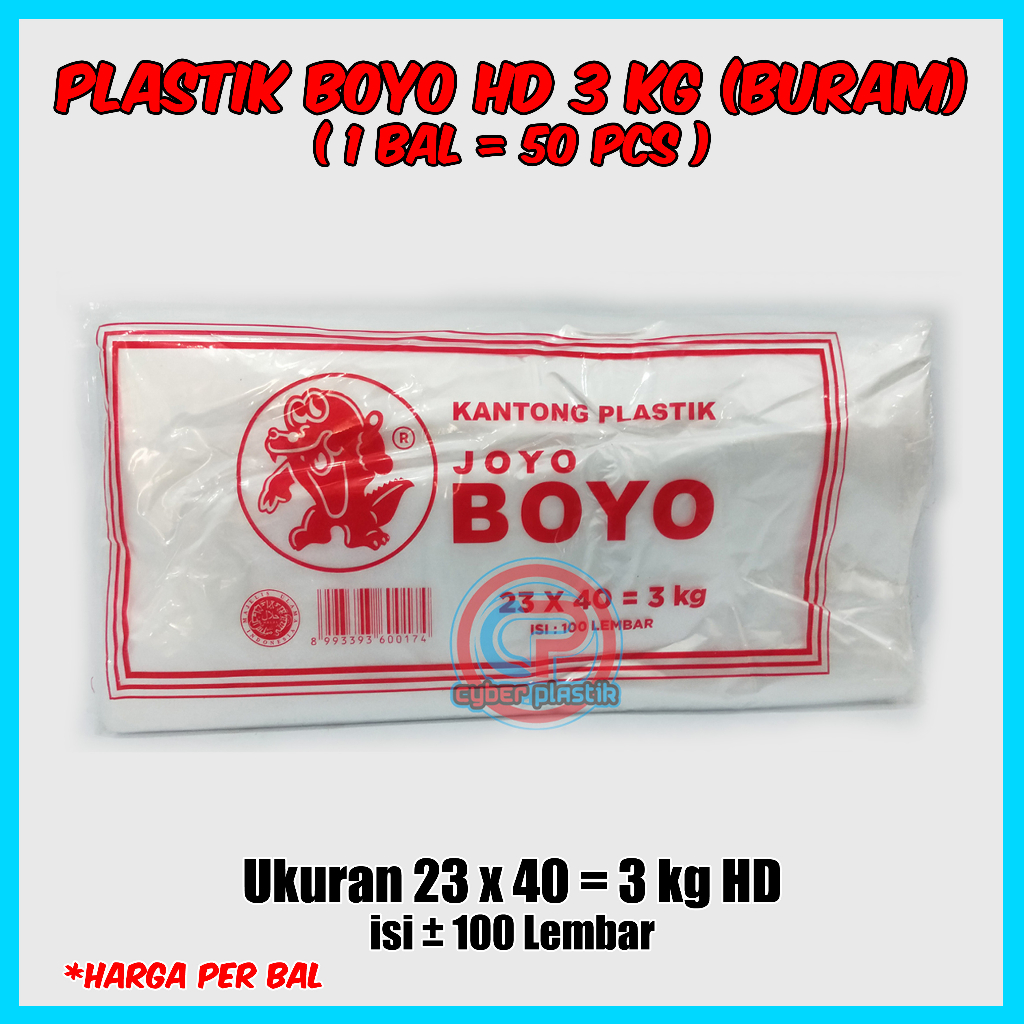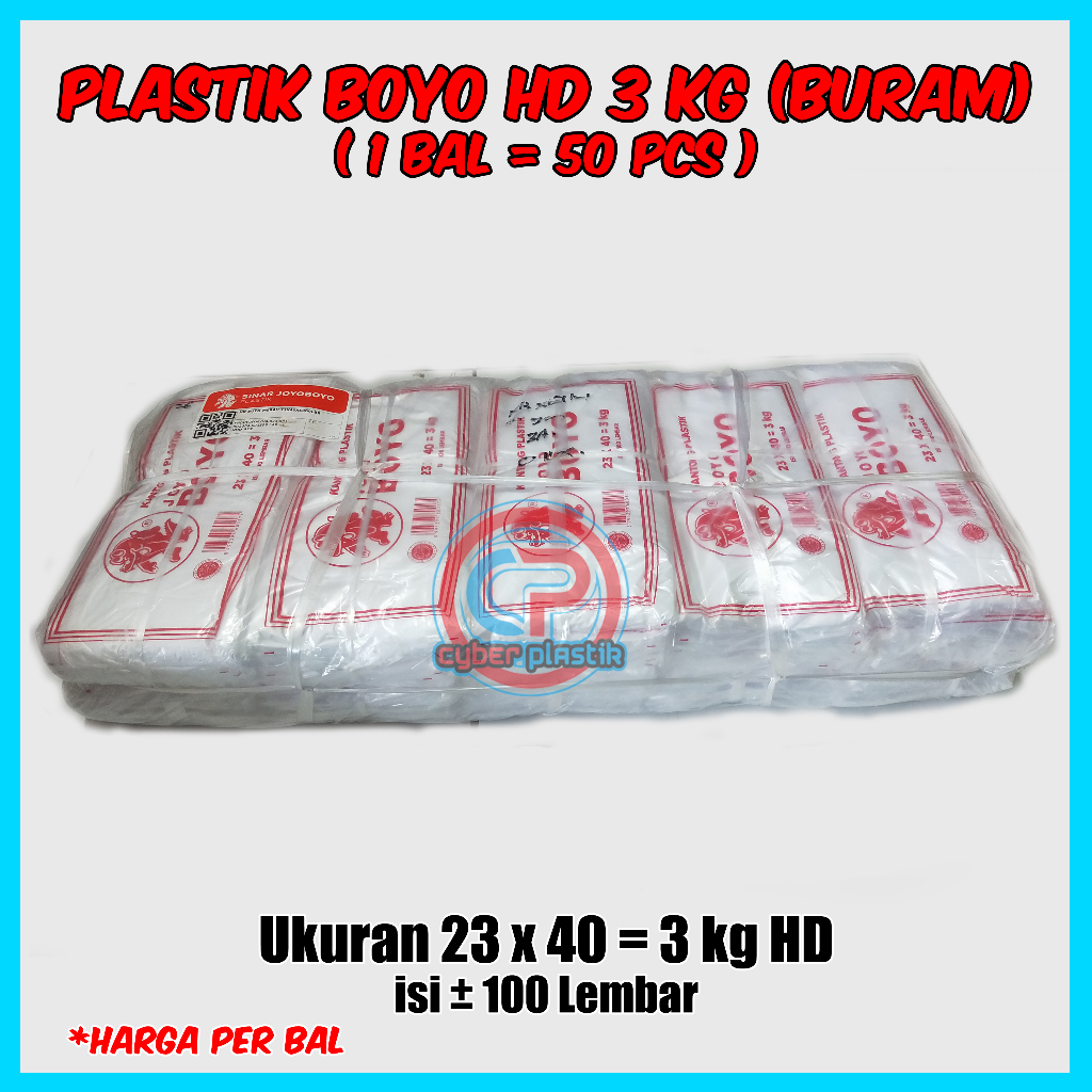 Plastik Boyo HD 3 kg Buram 0,1 (TIPIS) ukuran 23 x 40 = 1 Bal ( 50 pcs )