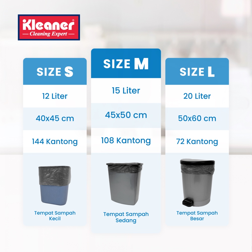 Kleaner Trash Bag HITAM 144 pcs - 12L /15L/ 20L (3roll) Kantong Sampah
