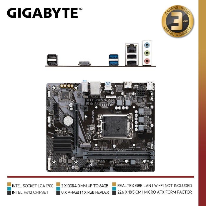 GIGABYTE H610M K DDR4 | Motherboard Intel H610 lGA 1700 Micro ATX