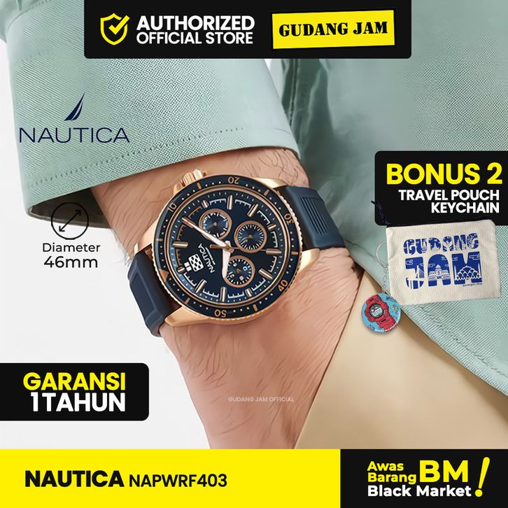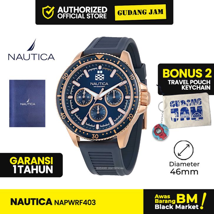Jam Tangan Pria Analog Nautica NAPWRF403 Black Silicone Strap